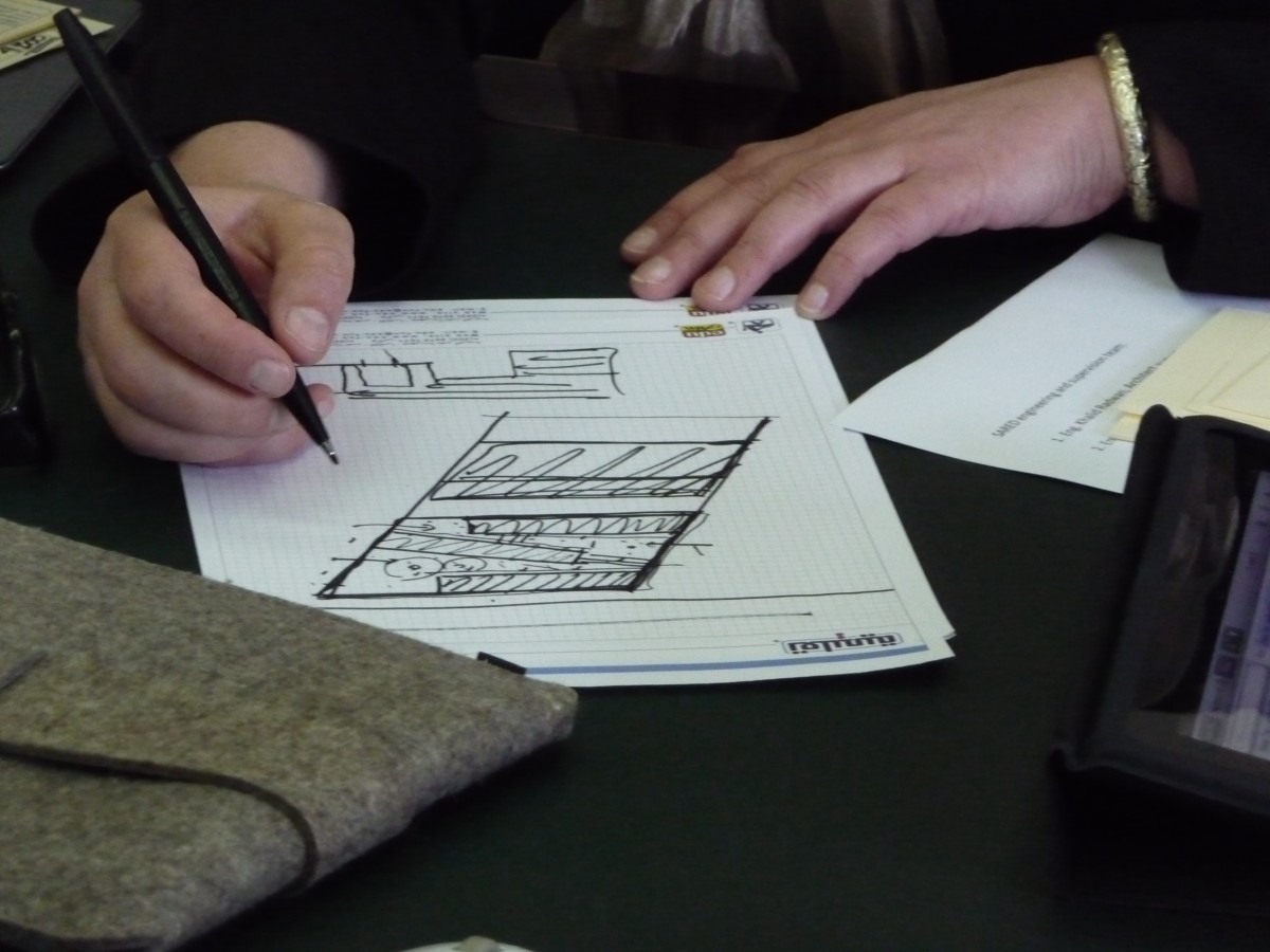 Maar aan de andere kant, ze willen echt iets bijzonders en de eerste ideeën zijn al onderweg. Dorte is al aan het schetsen en we denken dat we iets op het spoor zijn wat de combinatie kan worden van een modern kantoor met elementen van de lokale cultuur. We moeten ze ook verbazen want er zit nog een tweede opdracht aan te komen als we genoeg indruk maken met deze opgave.