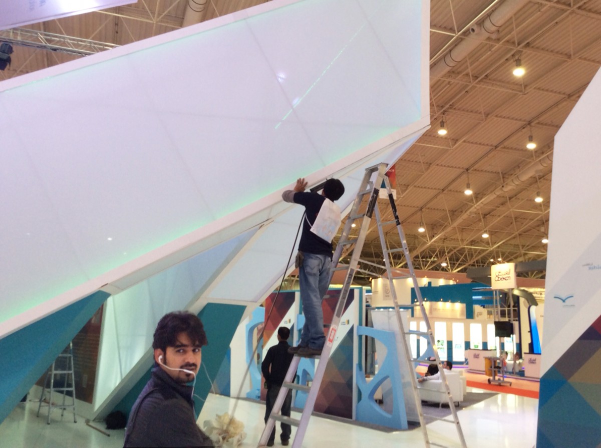 We staan voor de tweede keer op de beurs in Riyadh met onze partner Al Kayan en dit jaar ook samen met Ecophon. In februari is het heerlijk in Riyadh: rond de 24 graden en een beetje wind. We zijn hier bijna 5000 km van huis maar omdat we nu al een paar keer in Saoedi Arabië zijn geweest voelt het minder ver.