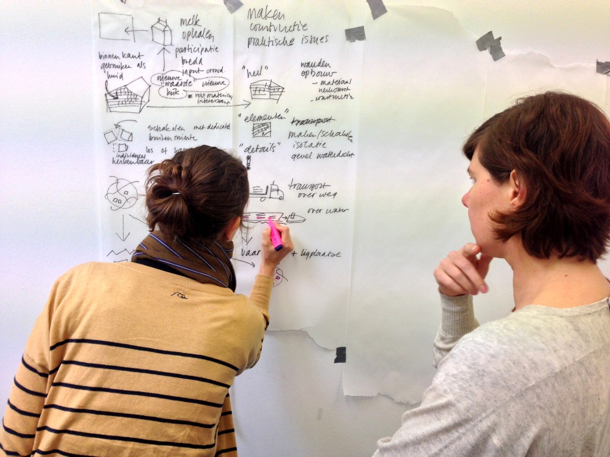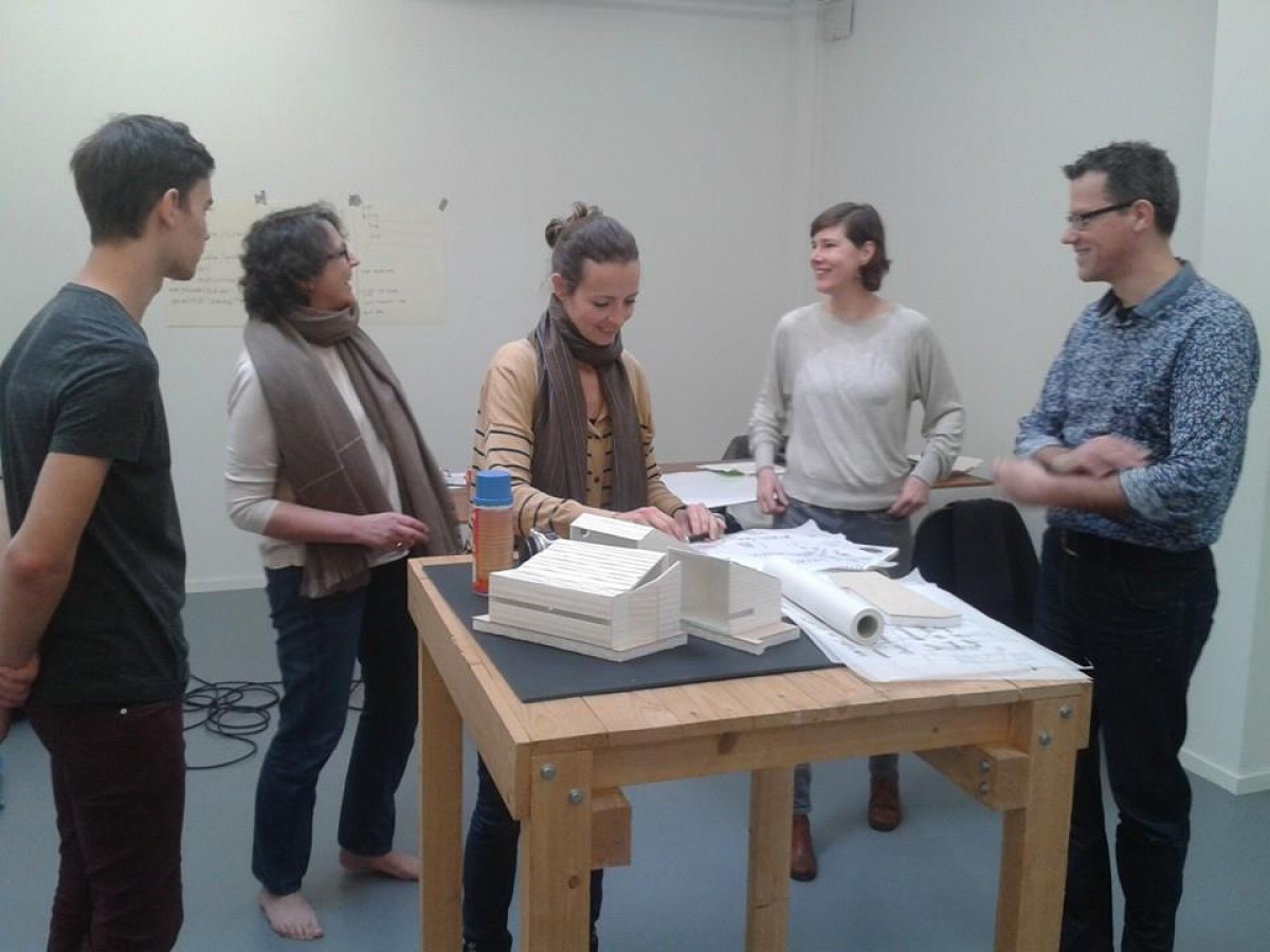 Op vrijdag 14 maart gingen we aan de slag. In het Huis voor Beeldcultuur in Breda werkten in totaal 9 teams van finalist-architect koppels de gehele dag in workshop setting aan hun eerste ideeën. Voor ons was het ouderwets improviseren. Niks geen BIM, niks geen Maxwell, het was terug naar de basis. Met minimale middelen en onder hoge tijdsdruk een zo helder mogelijk product presenteren. Hoe doe je dat?