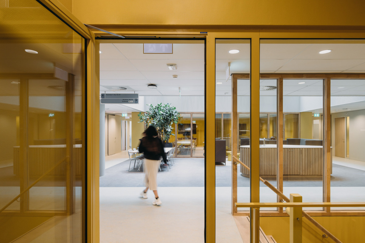 Atelier PRO and Vakwerk Architecten were commissioned to work on a new psychiatric ward by the University Medical Centre Groningen. In addition to providing healthcare, the building also had to accommodate education and research. Main goal was to minimise the patient’s perception of being hospitalised and to maintain a connection with society. Three principles therefore play a central role in the design: for people to wake up with the sun; to be surrounded by meaningful spaces, and to experience normality as much as possible.