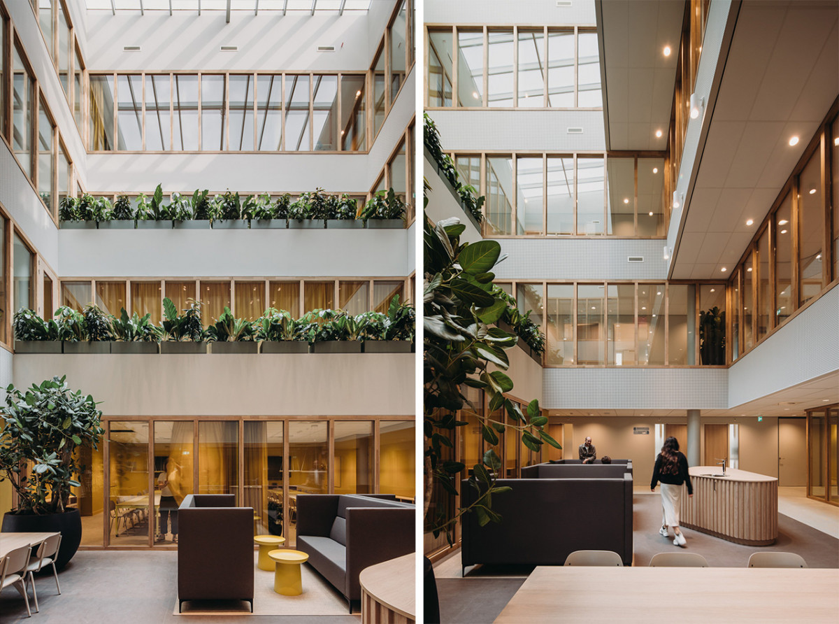 • Centrally located in the building is a spaciously designed indoor garden, a lush garden with a large sun-facing terrace