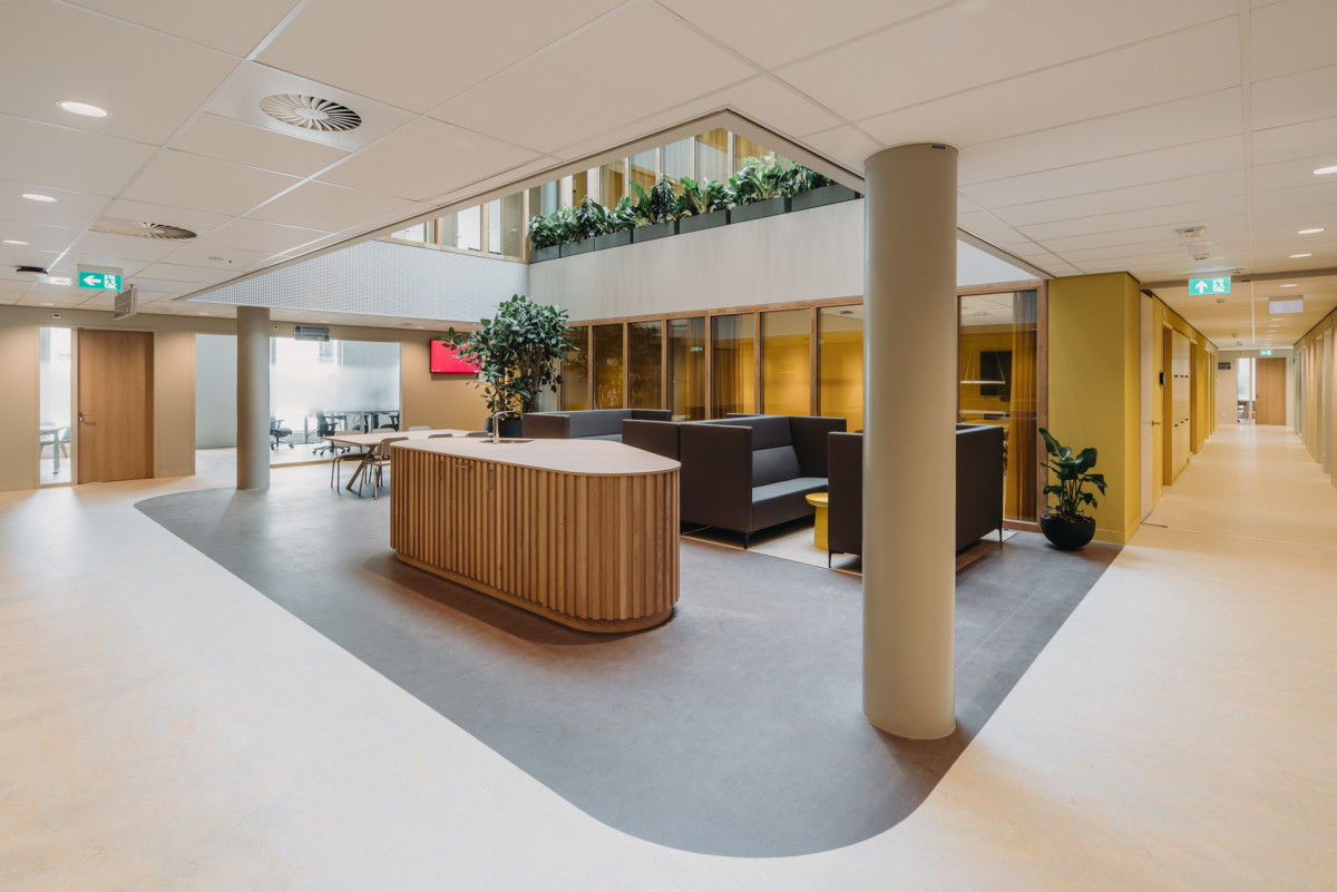 For psychiatric patients, it’s important that spaces are meaningful, that they offer distraction and are pleasant to spend time in. This was a guiding principle in designing the interior, which has been applied throughout the entire building, from the entrance hall with the grand café to the patient rooms, the therapy rooms and even the corridors. Colours have been chosen to match specific functions and wayfinding has been kept minimal, making the building feel less 'medical'. The intelligent combination of light, views, window sills, materials and colour positively guides people’s perceptions and feelings.