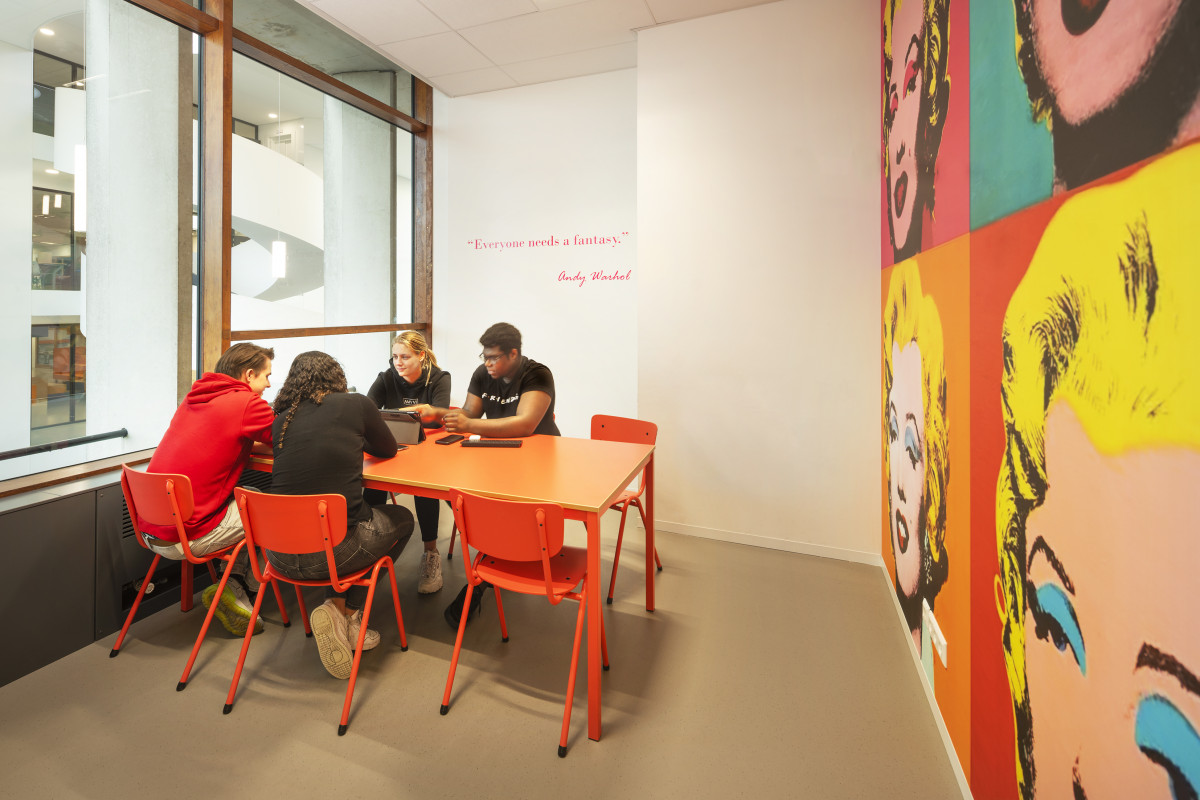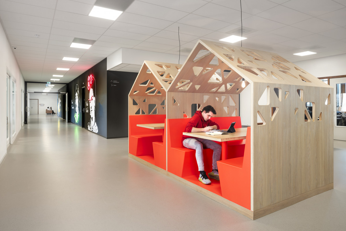 In the educational concept of Lumion, the focus is on people, which is reflected in the physical learning environment. Each individual has their own learning path. From this perception, the learning activities are described and translated into learning processes. Students choose how fast they learn and at what level. They choose where and how they do this, this has become the starting point for the design of the interior.