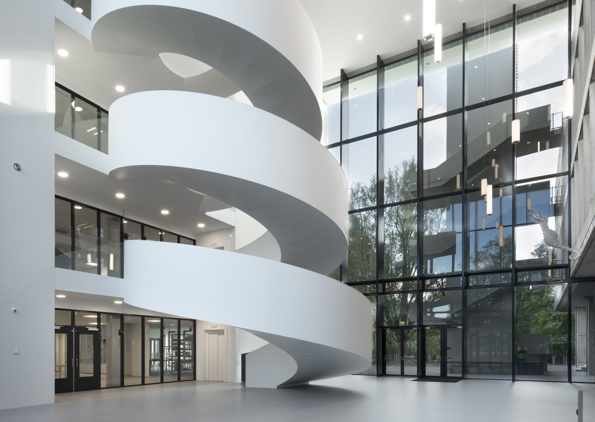 • The spectacular spiral staircase is the eye-catcher in the atrium.