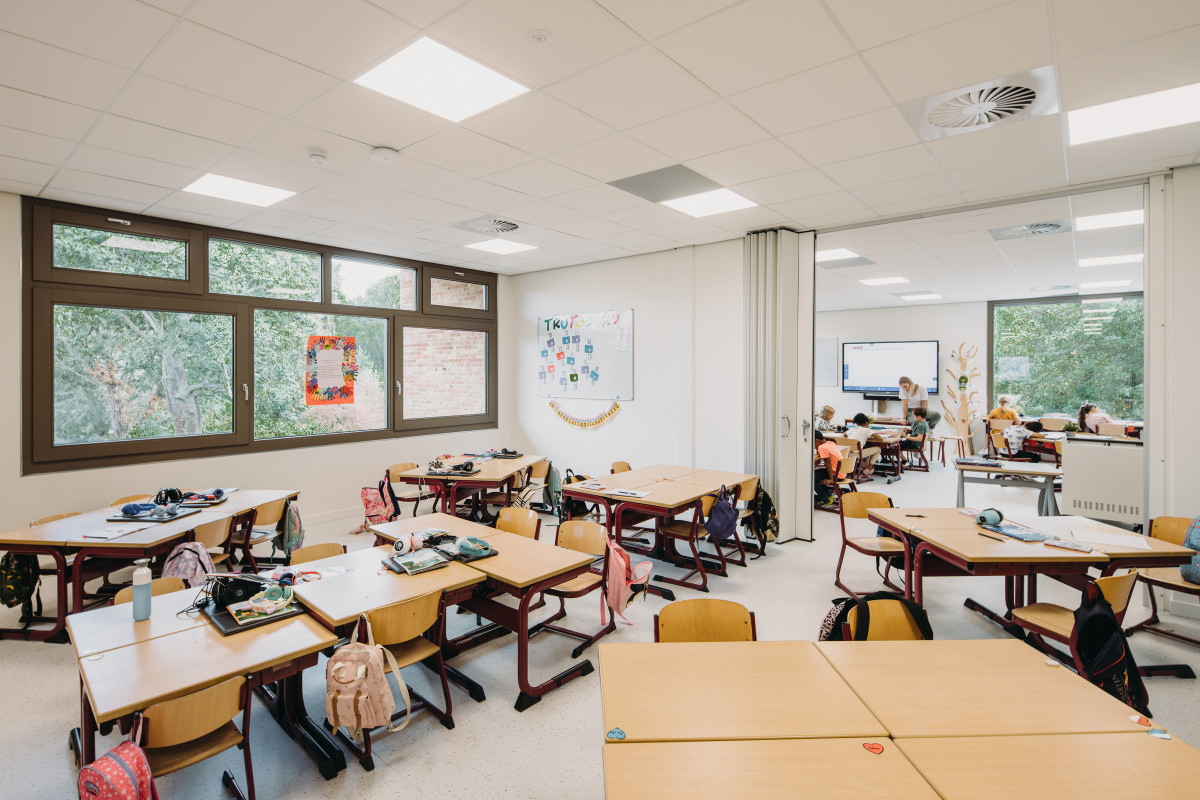 Because educational systems are always evolving we opted for a steel column construction; this means that the partition walls between the classrooms can easily be removed, and allows for future adaptions - in line with changing educational concepts and views. Due to their positioning within the building, the utility hubs act as subtle barriers, dividing the space into different "places" - even in a more open layout.