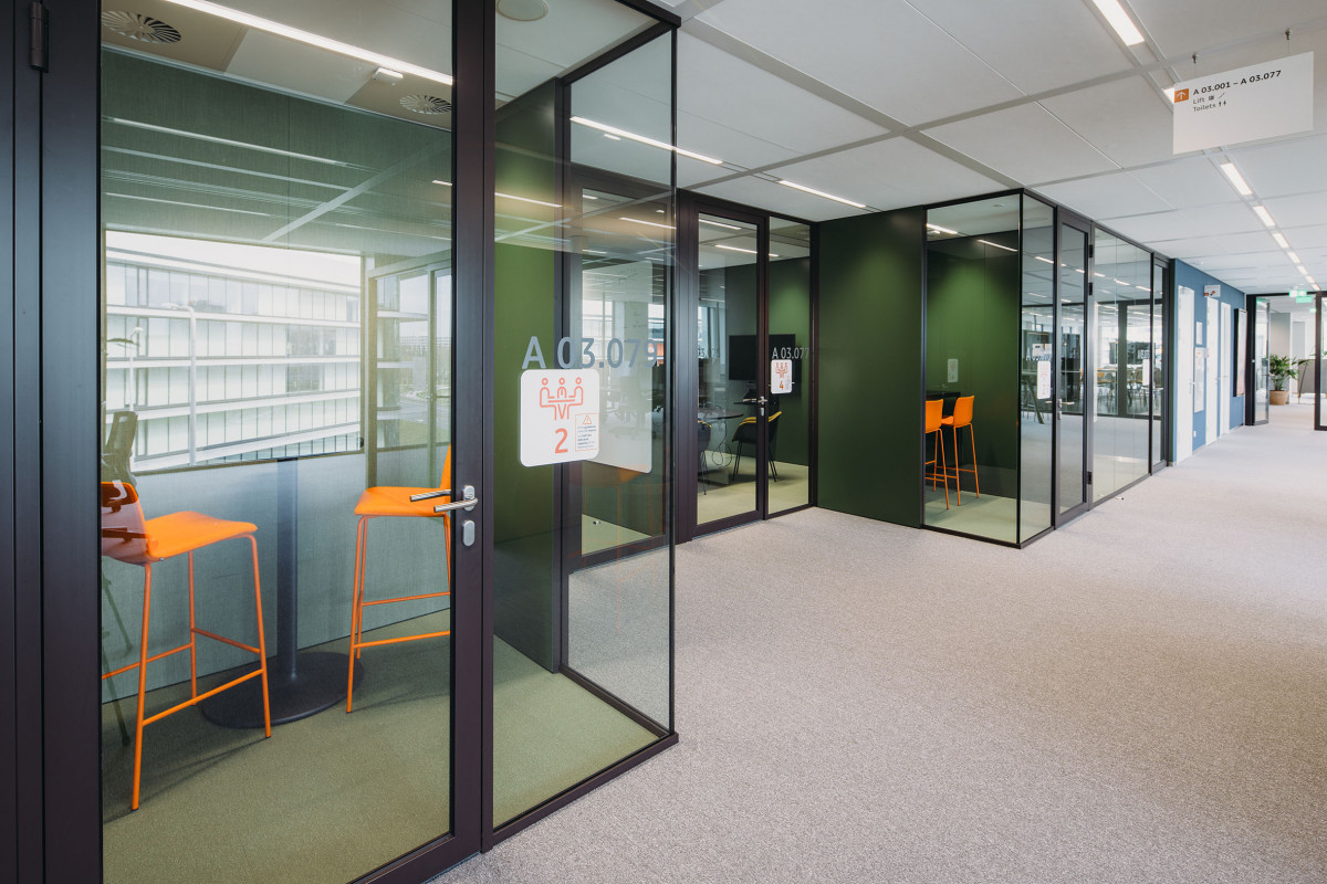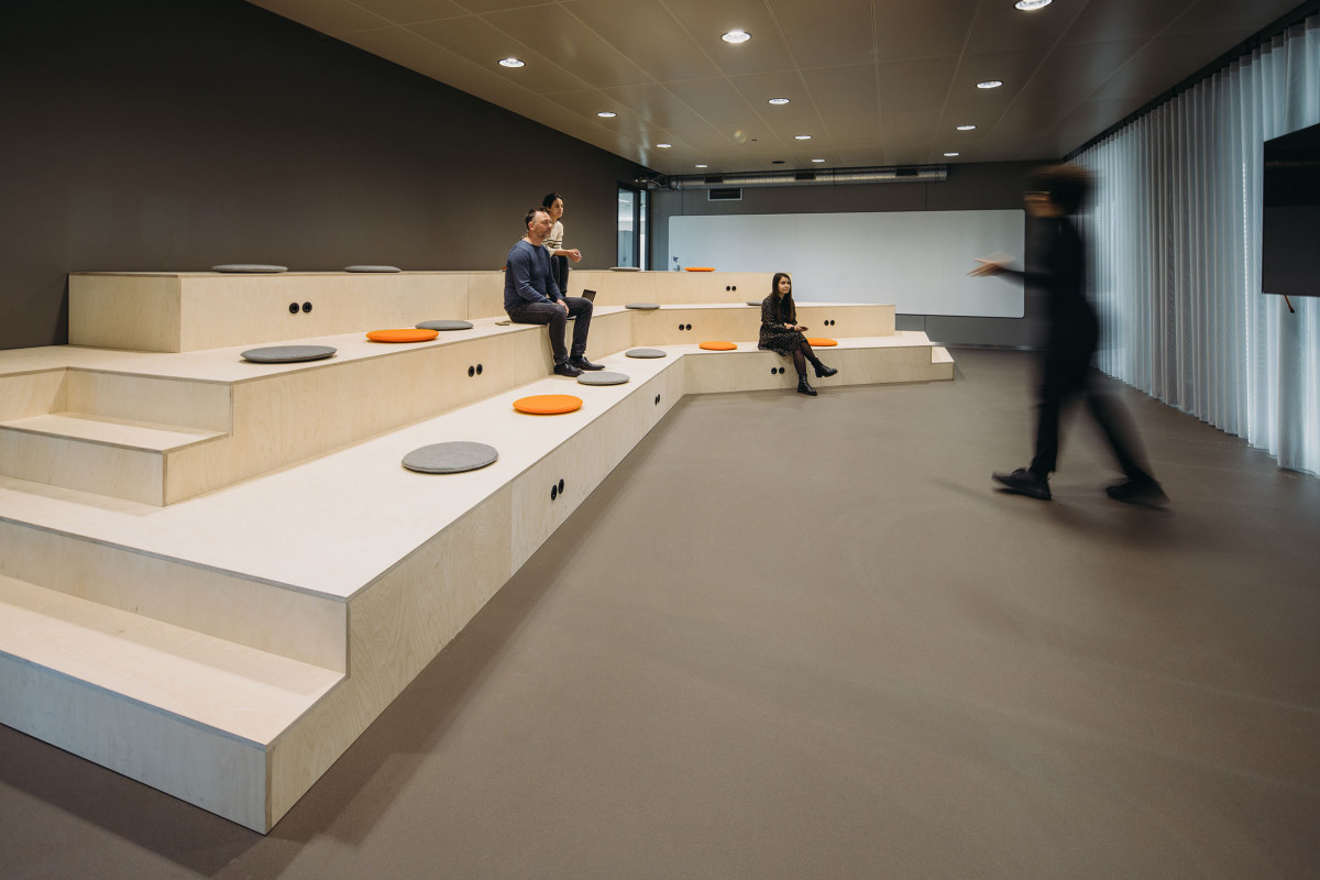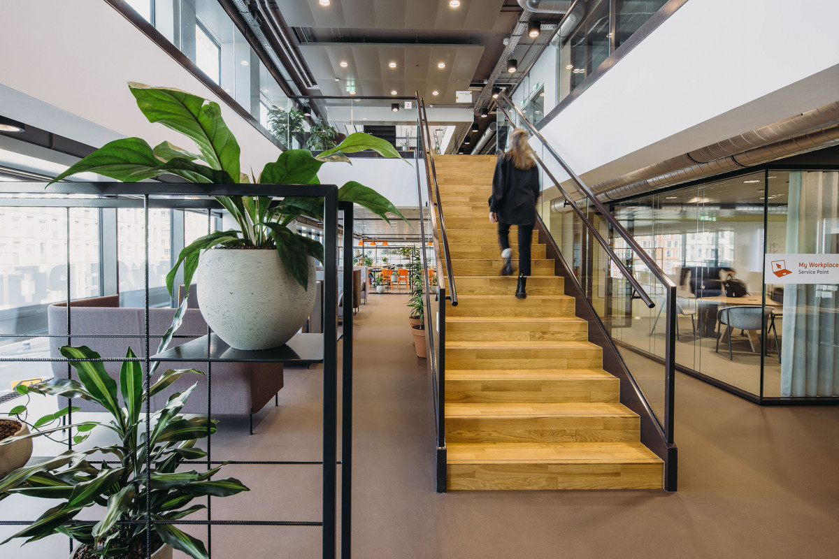The bank previously used a standard workplace concept for all its offices. About half of the office space in Maple was designated as a pilot area for atelier PRO to develop and adjust this concept - a testing ground for the future. Prompted by the covid lockdowns and the shift to online collaboration, ING decided to switch to a new way of working, with remote work playing a more significant role. Many employees have since returned to the office, but only partially, limiting their physical presence for meetings and collaborations. Therefore, the pilot area hosts an increased number of docking and consultation spaces - a spatial intervention which also made for a more informal atmosphere. Maple’s new, more flexible concept means the building can provide a place for some 2,000 of ING’s employees - which in turn also leads to increased sustainability. The office is more than just a place to work; it is also a home for ING’s employees, who have enthusiastically embraced the new concept.