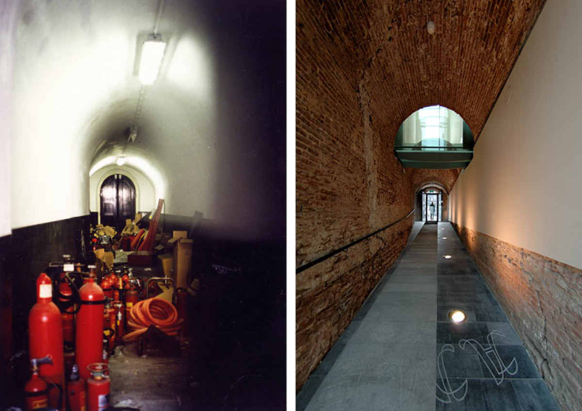 Public zones are situated at locations once occupied by the fine-meshed structure of gateways, alleys and inner courts. The Gasthuispoort and the beautiful Gasthuissteeg with its brick barrel vaulting became the new entrance. The inner courtyard is now a light court with a café. From this light court, visitors can also access the exceptional collection of the Allart Pierson museum. The public area lies between the various old buildings and is connected to the inner courtyard. The alleyways, the light court and the inner courtyard are now the public zone. The secure zone and the public zone have been separated, but they retain a view of one another via windows, voids, sightlines and double staircases. One difficulty with this building is the necessity to protect the collection and, at the same time, to restore the listed building. The conditions under which the books are maintained are of great importance – specific humidity and temperature control are required. The former oak construction, floors and ceilings also need a specific humidity and temperature control. In addition, The Society for the Preservation of Historic Buildings requested that all pipes and ducts should be hidden within the construction. In conjunction with the technical services consultant, it was possible to meet all these specific demands. There was intensive co-operation with the Society for the Preservation of Historic Buildings. The materials, layout and finishing were all chosen with the aim of retaining the atmosphere of the building. Equilibrium has been achieved between the wishes of the Society for the Preservation of Historic Buildings, the demands that were made for the books, and the separation of the public zone from the secure zone.