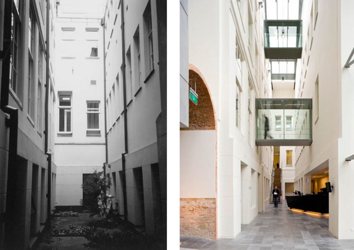 This building complex is the showpiece of the University of Amsterdam. Academics and students from all over the world come here to study the collection of medieval books. The idea was to create an open, friendly and accessible building for the guests, but one which should evoke the distinctive ambience of the mercantile city as well. The total building complex is divided into four sections by a light court and the Gasthuissteeg (alleyway). With the addition of a new glass front, the untidy rear facades on the inner yard have acquired the allure of a court facade.