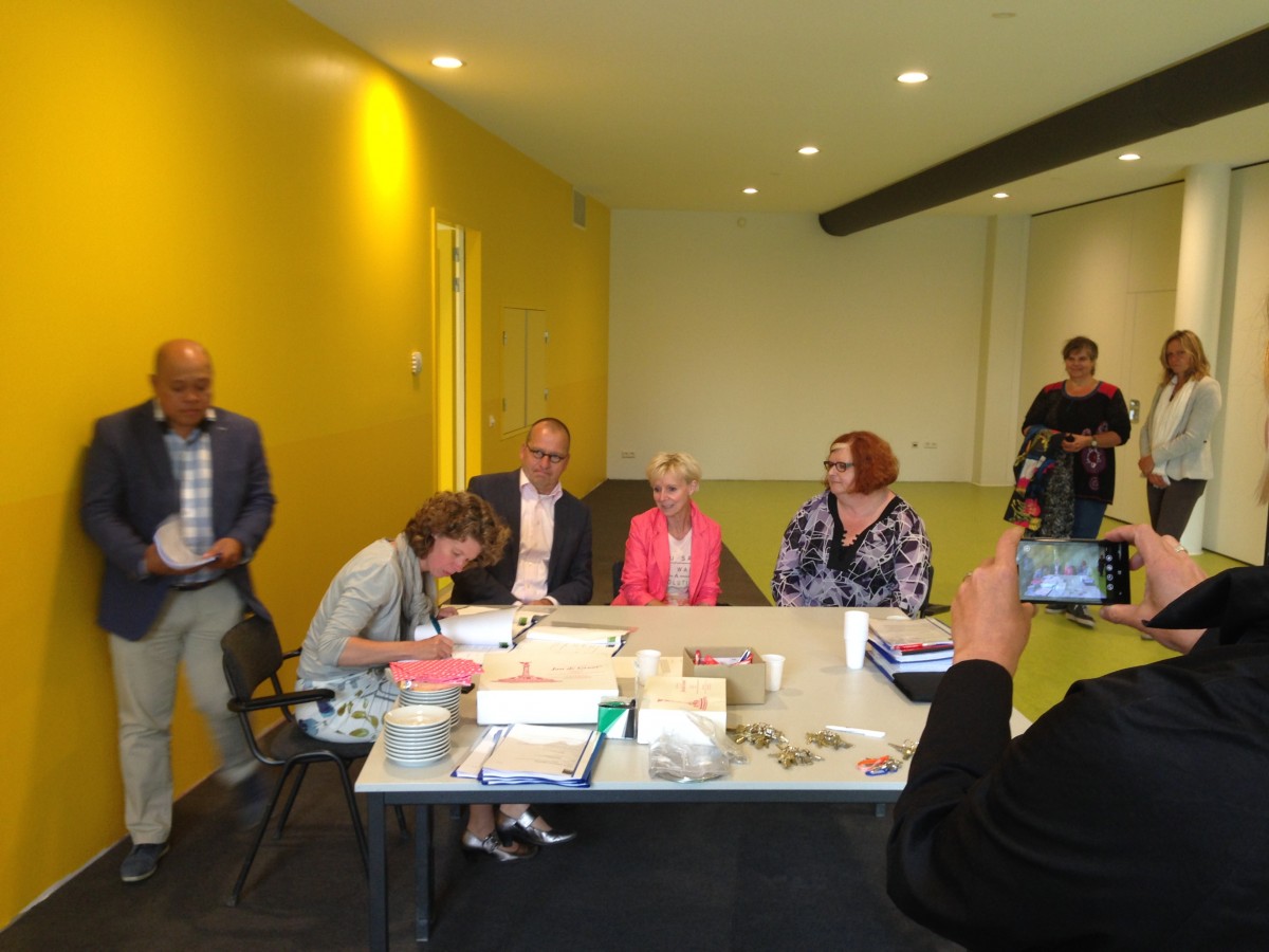 Met grote bossen sleutels, handtekeningen en taart zijn de MFA Krimpen a/d Lek en Onderwijspark Ezinge overgedragen aan de gebruikers. Twee keer trots!