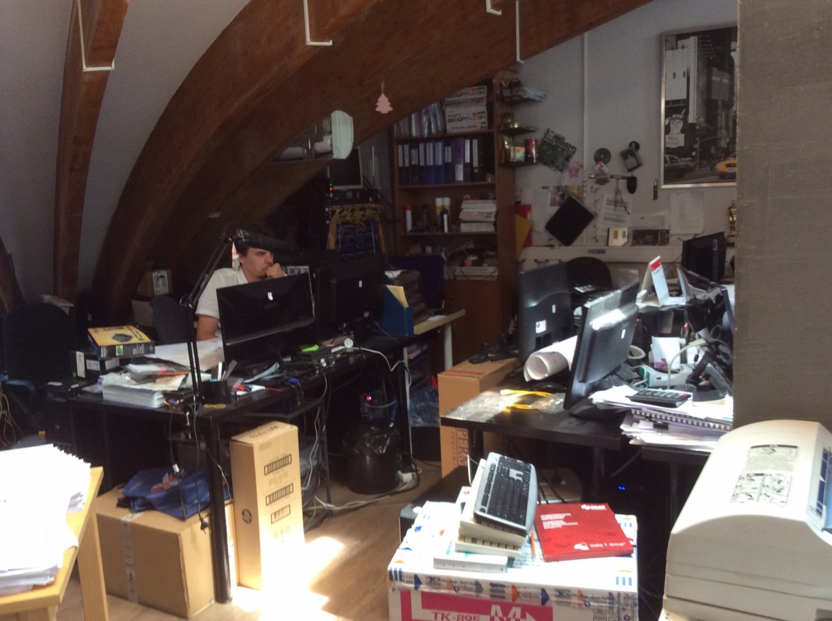 's Middags gaan we naar onze lokale partner. Het is een heel jong bureau dat 10 jaar geleden gestart is en nu met 300 man is. Dat is aan hun kantoor te merken. Ze barsten uit hun voegen zoals op de foto te zien is. Elke vierkante meter wordt benut en ze hebben zelfs een stukje in de lucht gebouwd. Hoe je je hier kunt concentreren is ons een raadsel. Gelukkig voor ze gaan ze binnen een paar maanden naar een grote fabriekshal, die voor ze verbouwd wordt. Daar kunnen ze allemaal bij elkaar zitten, in plaats van verspreid binnen 1 blok over verschillende verdiepingen.