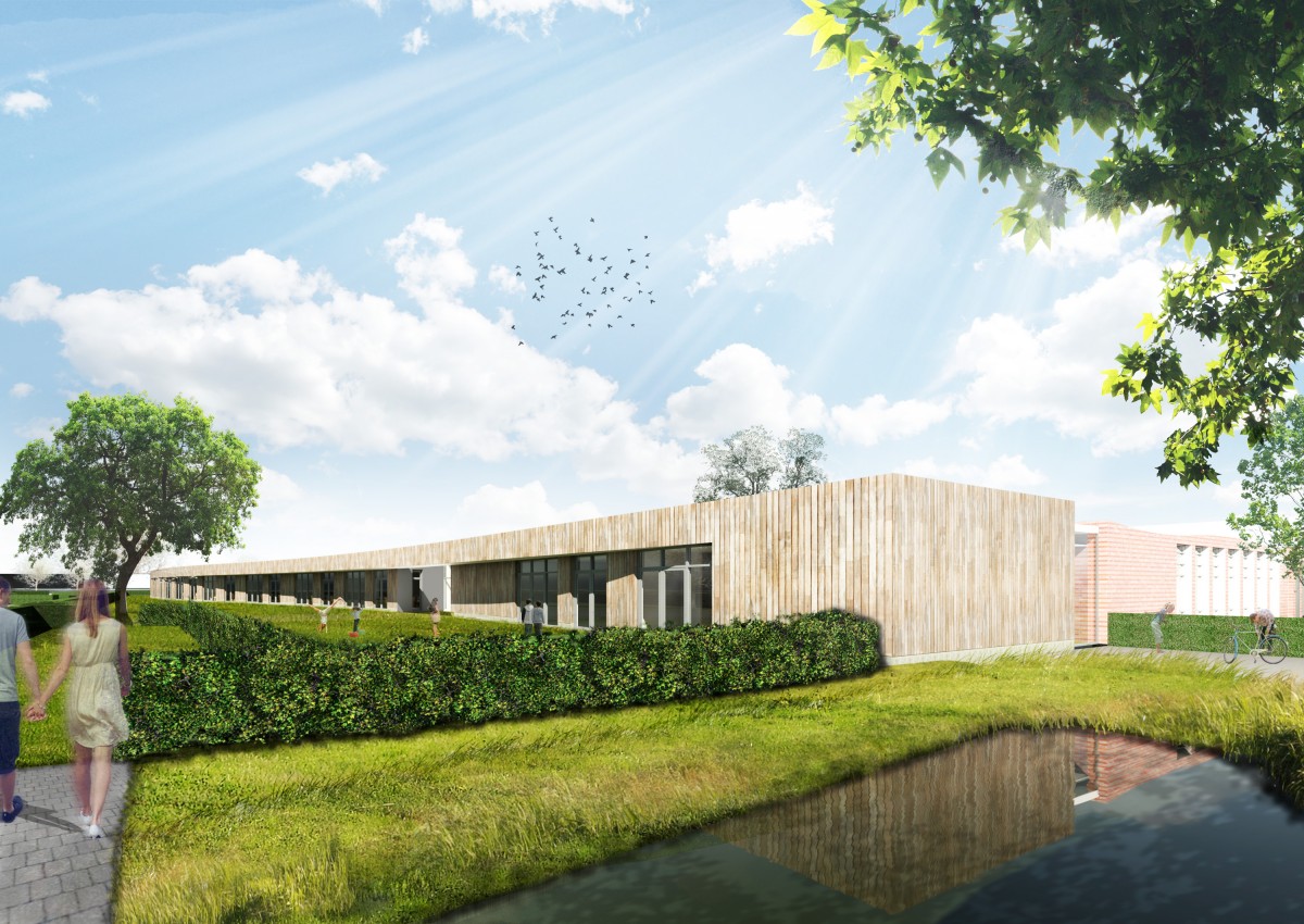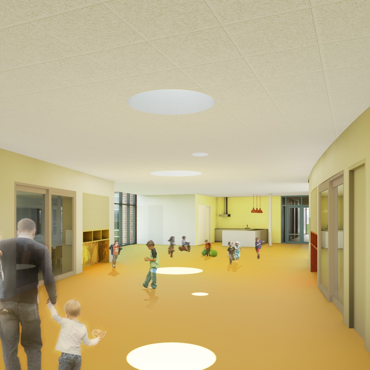 De locatie maakt deel uit van een groen gebied om Warmond waarin gebouwen losser zijn opgenomen dan in de dorpskern. Atelier PRO sluit hier op aan door het nieuwe deel van het Kloppend Hart een vrije, golvende vorm te geven. Krimp en groei van de scholen kan eenvoudig opgevangen worden door met de lokalen schuiven. De drie basisscholen kunnen ook eenvoudig op termijn tot twee scholen of één school samen gaan.
