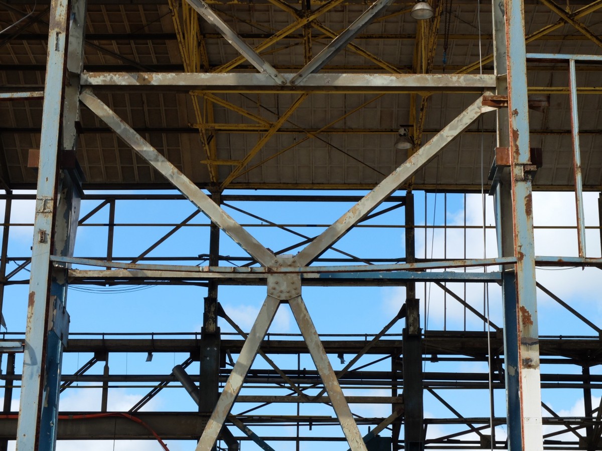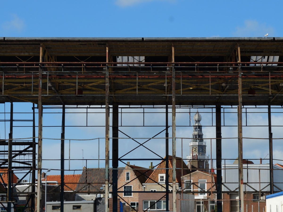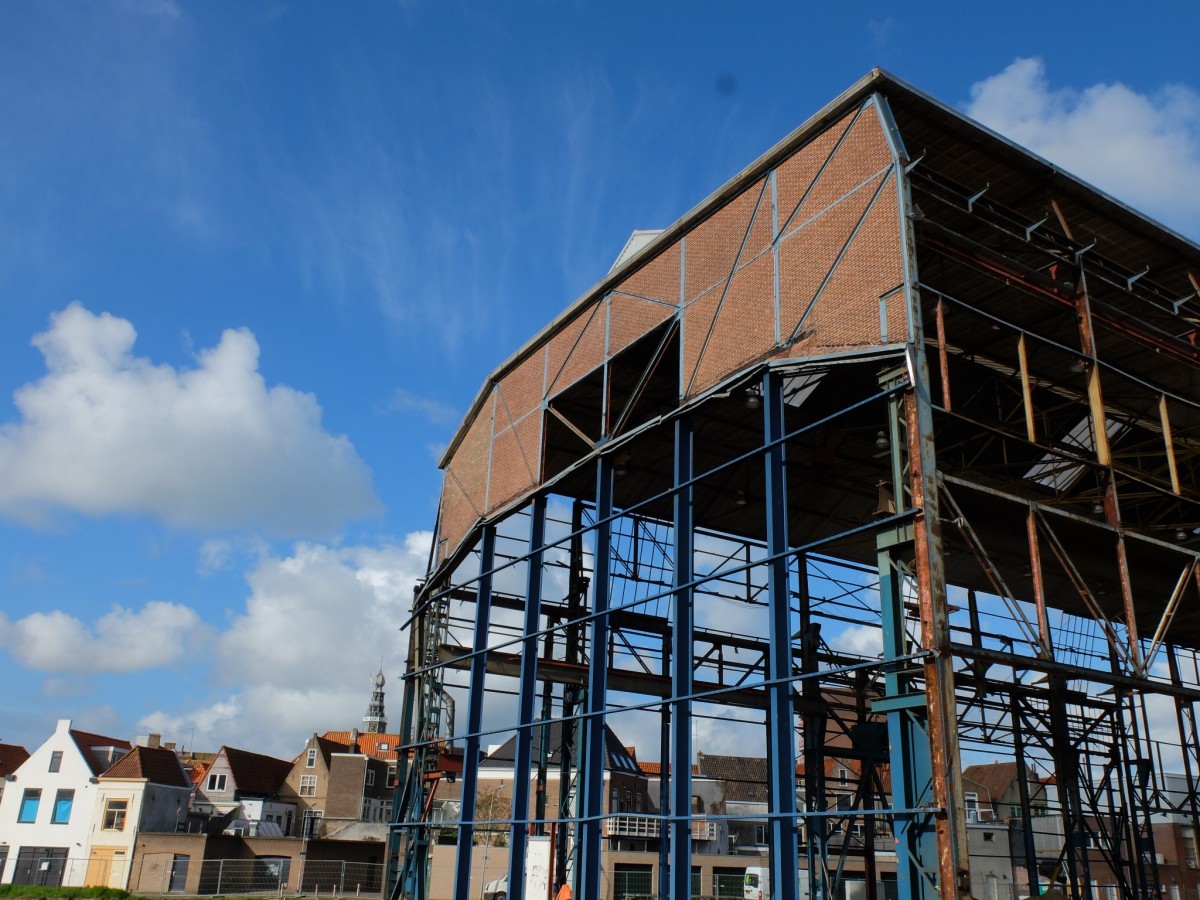 Dat gevoel kreeg ik bij de plaatwerkerij ook. Een beetje eenzaam staat hier een skelet van de plaatwerkerij in Vlissingen. Het staal verbogen en geroest. De constructie piept en knarst af en toe in de wind; het lijkt wel een scene uit een western. En toch wordt dit echt een zorgcentrum.