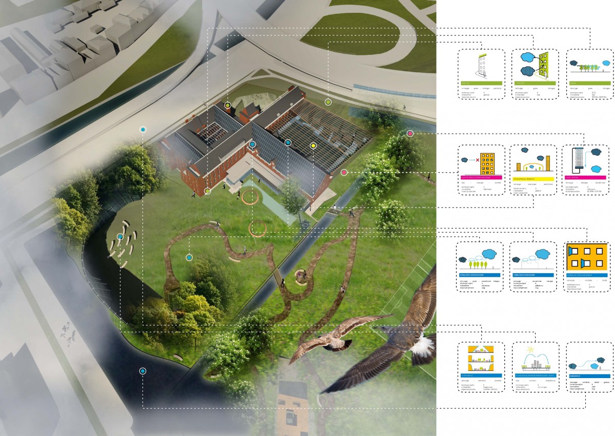 In 2013 ontwierpen we een school aan de drukke ring van Antwerpen. Onder de titel Clean Air Schools is toen een bijzonder ontwerp gemaakt voor een nieuwe school. Het leverde ook een toolbox met maatregelen op die inzicht geven in ruimtelijke oplossingen die zowel in het interieur als exterieur de luchtkwaliteit verbeteren.