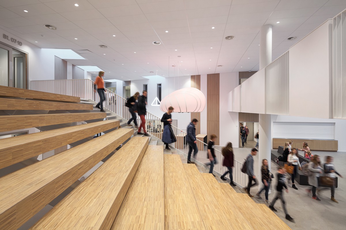 In zijn inleiding, zie het filmpje, kreeg ons gebouw de complimenten. Maar daar wees hij ons op een fenomeen dat ik eigenlijk wel kende maar me niet zo letterlijk gerealiseerd had. Publieke ruimte en gebouwen waren een tijd het stiefkindje van de maatschappij. Niet in de jaren vijftig en zestig maar daarna wel; zonde om er geld aan uit te geven. Het was zoiets als een openbaar toilet. Het heeft tot veel stedenbouwkundige en architectonische rampspoed geleid. En dan ineens eind jaren negentig mag er weer wat en worden scholen weer mooi. Zou het met de invoering van de Europese aanbesteding te maken gehad?