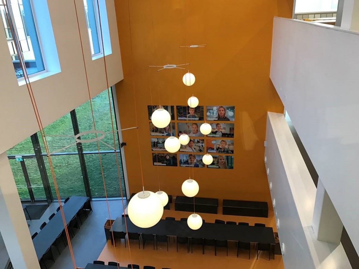 Een inrichtingsontwerp voor een school is een boeiende opgave waar ik mijn ziel en zaligheid in kan leggen. Een schoolruimte is nooit in een keer klaar. Zodra een school gerealiseerd is en in gebruik genomen wordt, ben je als interieurarchitect na verloop van tijd benieuwd of het interieur ook gebruikt wordt zoals het bedoeld was. Zo ook bij Onderwijspark Ezinge in Meppel, opgeleverd in 2014 en onderkomen voor zo’n tweeduizend middelbare school scholieren.
