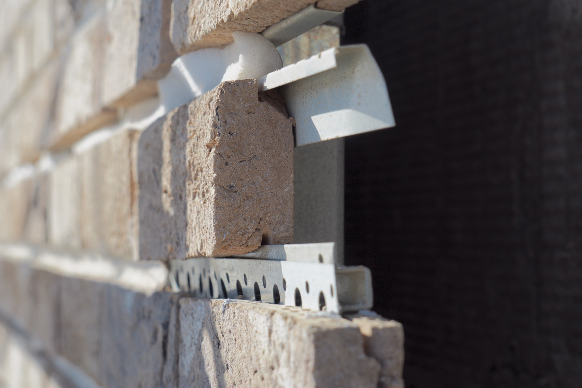 Allereerst verbaas ik me over de gemetselde gevel. In Nederland zijn onze gemetselde gevels in feite een zeer dikke esthetische regenjas. Hier is het metselwerk flinterdun. Op een aluminium regelwerk zitten verzinkte strips en daarin worden steenstrips geschoven van 2 cm. De steenstrips hebben een fabrieksmatig ingeslepen sleuf. Als het dan in elkaar zit, inclusief de hoekstukken voor de negge, wordt het gevoegd en dan is het alsof het massief metselwerk is zonder gevaar op uitbloeien van zout, want er is geen metselspecie aan te pas gekomen. Wonderlijk dat het zo strak eruit ziet.