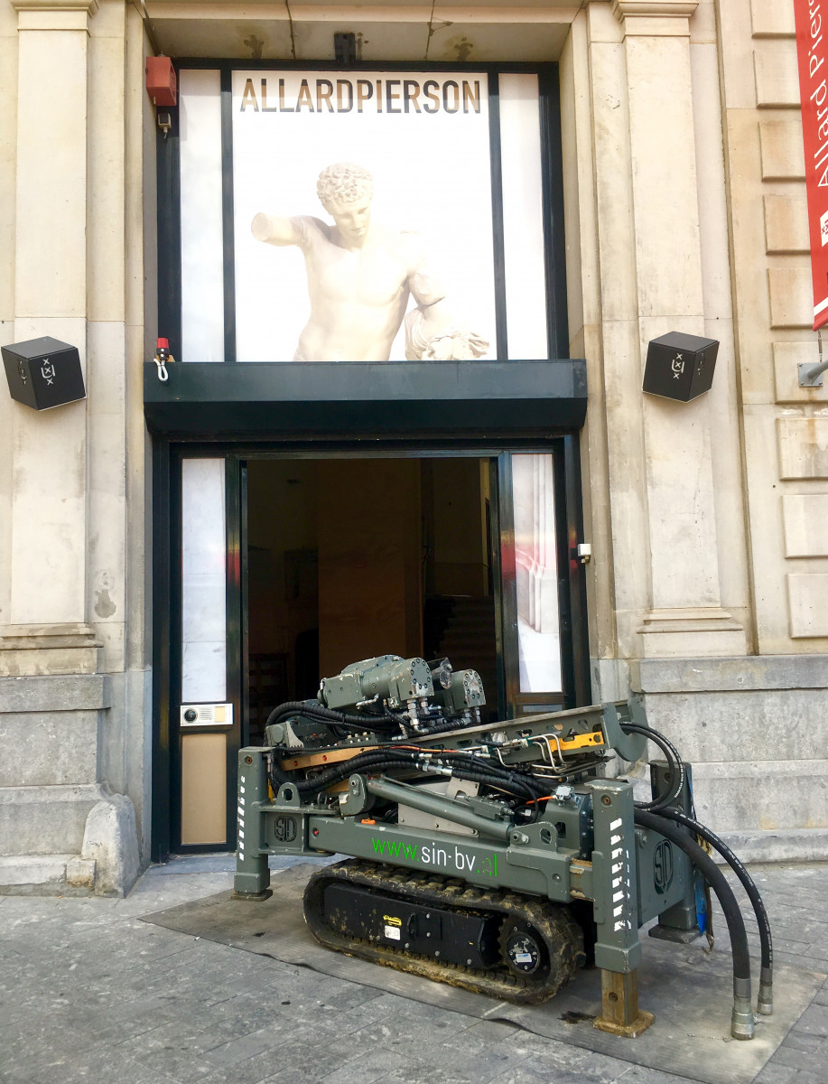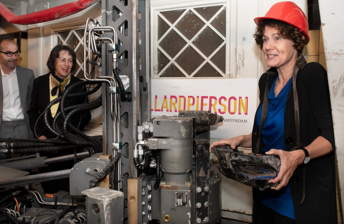 Voorzitter van het College van Bestuur van de UvA, prof.dr. Geert ten Dam bediende de knop van de boor om de finale draai te geven aan de grondvesten van dit nieuwe stukje Amsterdam. De boor manoeuvreert zich door de goudgangen van de voormalige De Nederlandsche Bank om de nodige buizen richting een stabiele zandlaag te schroeven. Hiermee wordt het fundament gelegd voor wat daarboven de komende maanden zal groeien: de ‘diamant’. Deze transparante inbreiding voorziet het museum van extra tentoonstellingsruimte en verbindt binnenin losstaande gebouwdelen en verdiepingsvloeren.