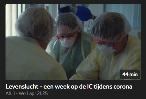 We werken nu 3 weken thuis, vergaderen thuis, leren thuis. Soms bekruipt je een gevoel van: “is het wel nodig?”. De documentaire 'Levenslucht -een week op de IC tijdens corona' drukt ons met de neus op de schrijnende feiten. We waren aanvankelijk vooral getriggerd omdat ‘ons’ Meander Medisch Centrum erin te zien is. Onze trots op dat gebouw wordt stevig gerelativeerd door de enorme bewondering voor de ménsen die daarin hun werk te doen hebben. Verbijstering over wat covid 19 aanricht en wat dat voor hen en voor de zorg in het algemeen betekent. We delen de documentaire om díe reden. De druk op de zorg, de zieken en alle gevolgen die deze crises met zich meebrengt, hangt voor een groot deel af van onze keuzes