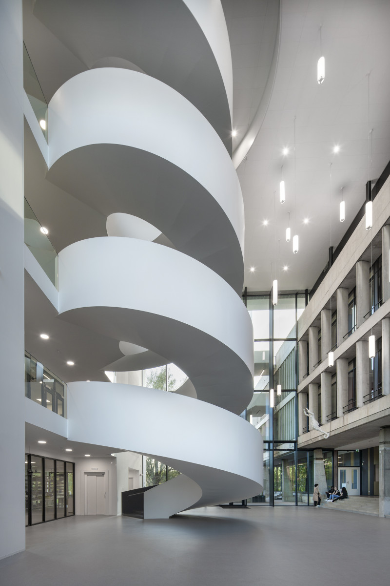 De stalen uitkragende wenteltrap is een ontwerp van atelier PRO en is tot stand gekomen in nauwe samenwerking met Van Rossum Raadgevende Ingenieurs. Het is namelijk niet zomaar een trap, maar een icoon waarmee Lumion Amsterdam een statement wilde maken, een 'wauw'- effect wilde bereiken. Projectarchitect Martijn de Visser en senior adviseur Ewoud Bruinsma van Van Rossum vertellen het verhaal over het ontwerp- en bouwproces van deze 'overtreffende trap'.