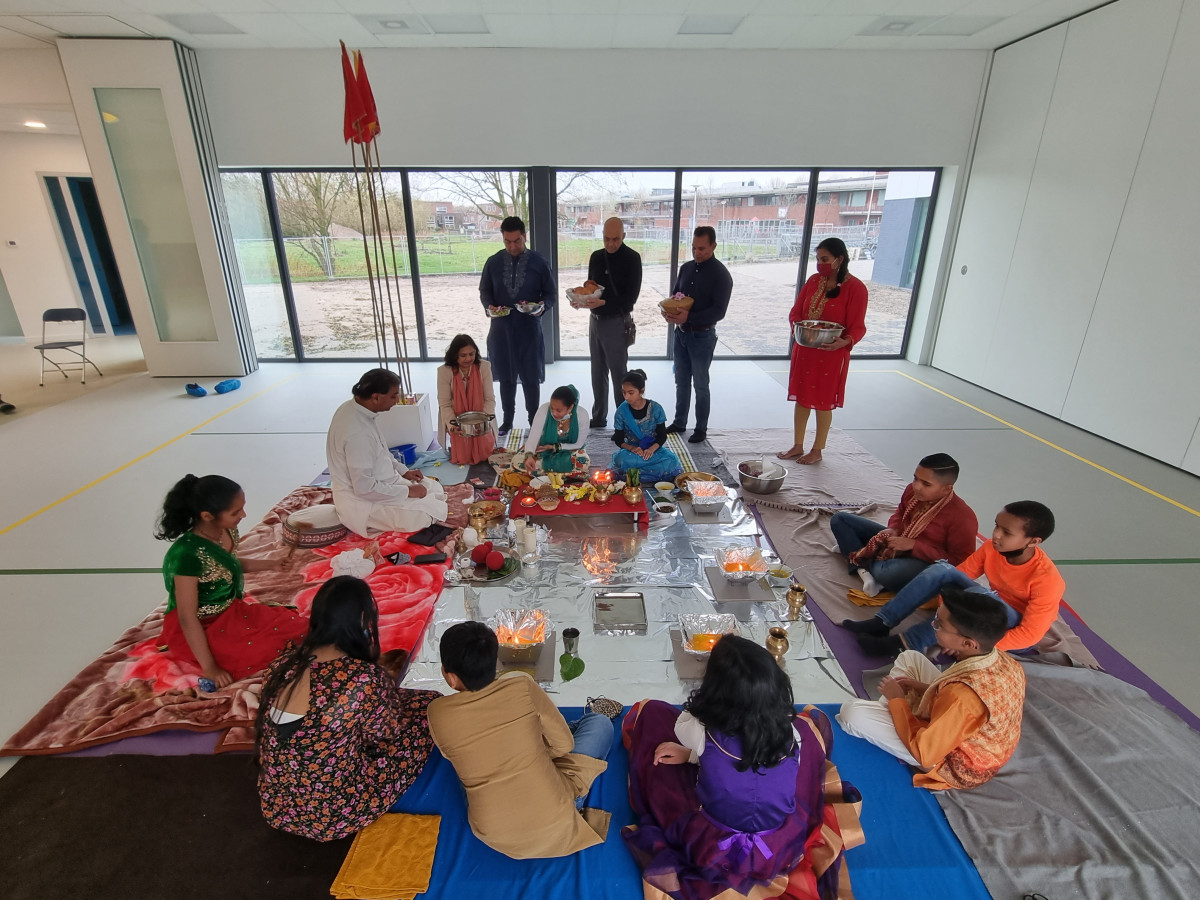 Op vrijdag 10 december is de Hindoeïstische basisschool Shri Krishna in Utrecht ingewijd. Op traditionele wijze hebben leerlingen en leraren het gebouw feestelijk geopend met gebed en lekkernijen.