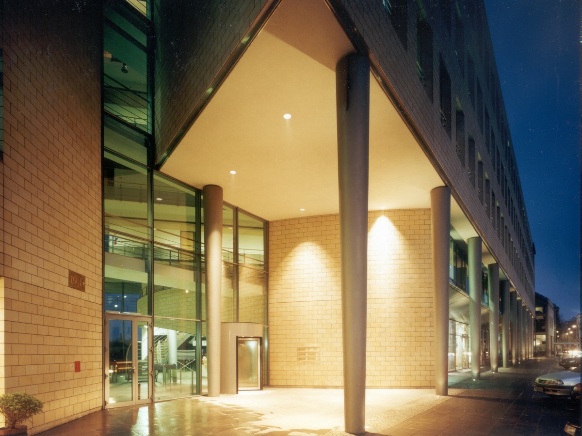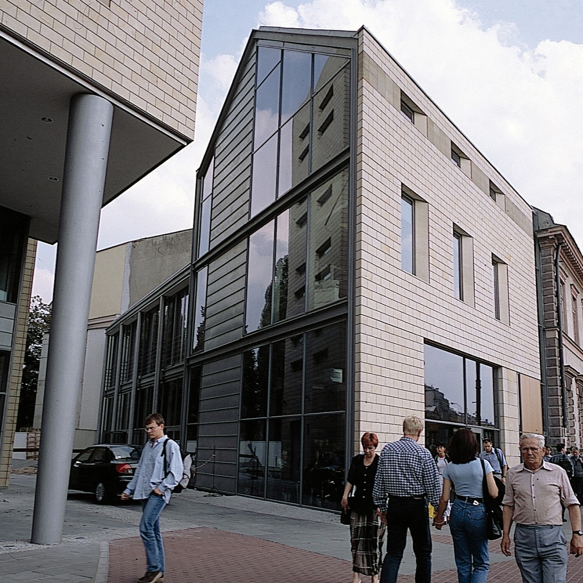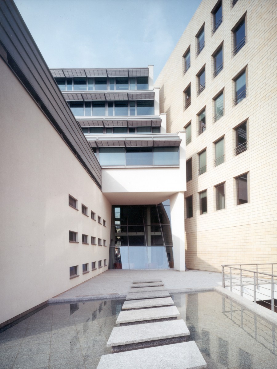 Het kantoorgebouw naar ontwerp van atelier PRO biedt de oplossing voor de in de oorlog zwaar gehavende oostwand van het Driekruizenplein in Warschau. Tegelijk geeft het vorm aan de hoek met de Ksiazecastraat en de aansluiting op het uitgestrekte parkgebied langs de Vistula Rivier.
