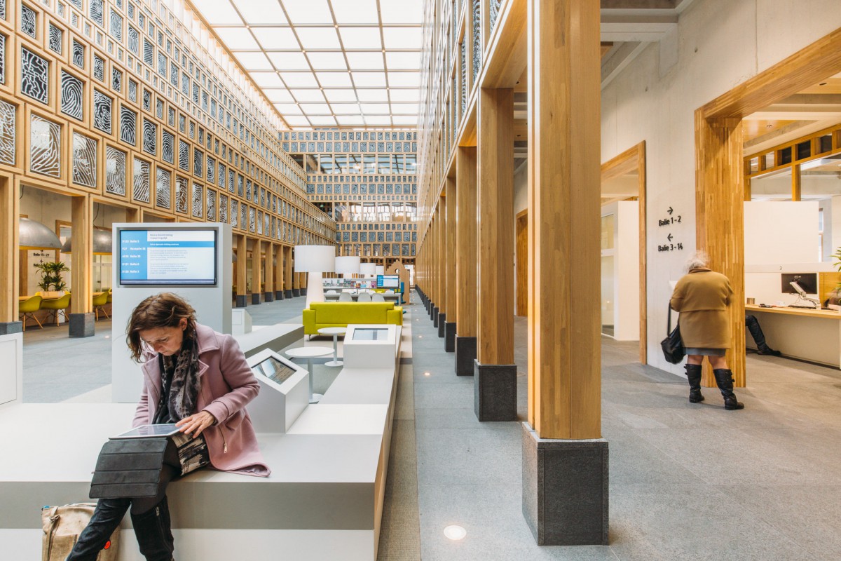 Atelier PRO heeft daarnaast ‘Het Nieuwe Wachten’ concept ontwikkeld en toegepast in de openbare publiekshal. Interieurcomfort uit zich in navolging van wachttijd, zodat de wacht-plek gekozen kan worden bij gewenste gemoedsrust. Zakelijk meubilair voor bezoekers met haast, en een meer zacht interieur voor rustige plekken waar langer wordt verbleven. De functionele indeling van de publiekshal is dus net als ‘Het Nieuwe Werken’ gerelateerd aan de activiteiten waarbij zichtbaarheid, overzicht en duidelijke wachttijdaanduiding van groot belang zijn. Het interieurontwerp ondersteunt hierin de bedrijfsvoering en het hoge niveau van service en ‘hostmanship‘ van de gemeente Deventer.