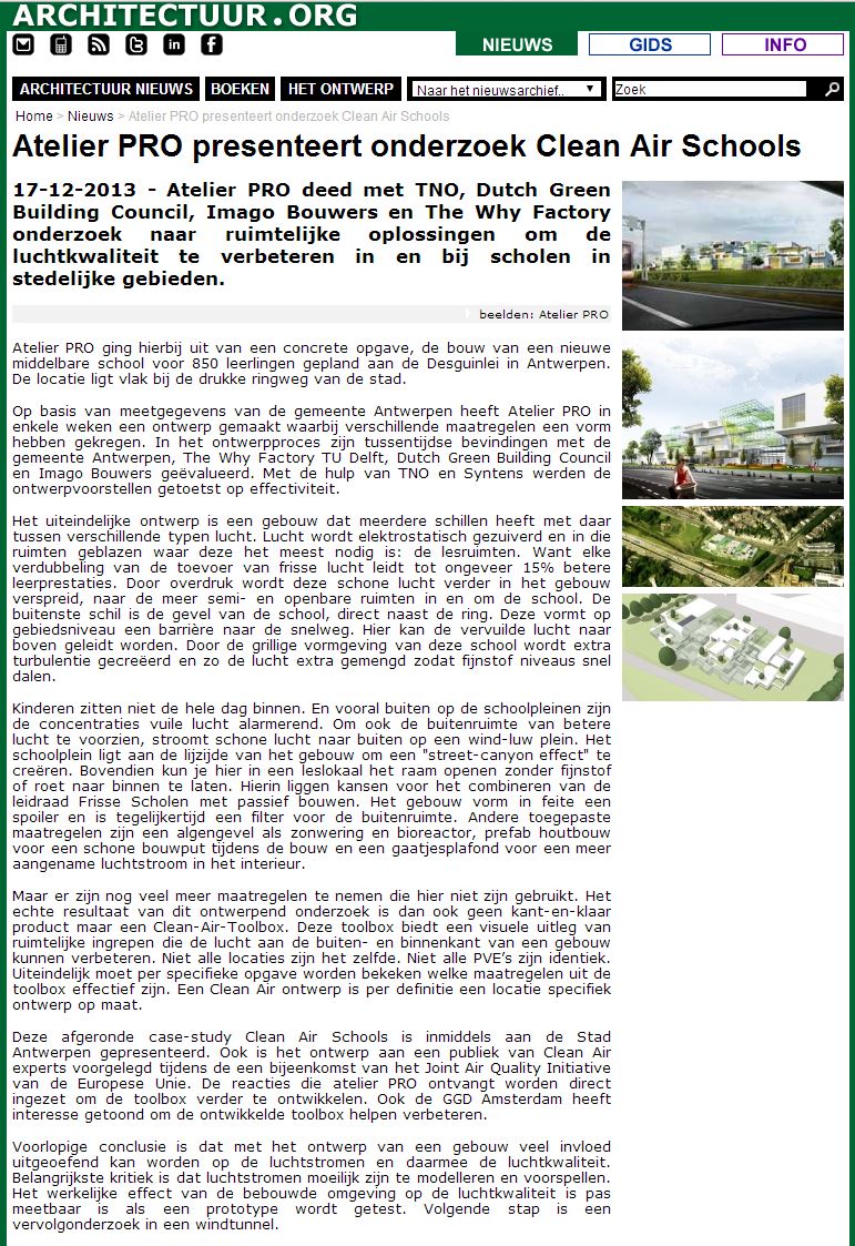 Architectuur.org: Atelier PRO presenteert onderzoek Clean Air Schools