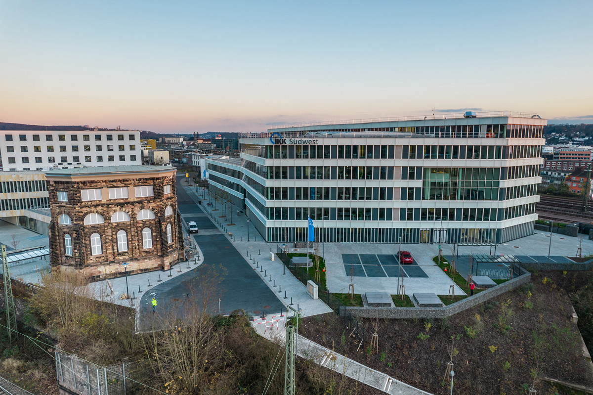IKK Südwest bouwde in Quartier Eurobahnhof in Saarbrücken een nieuw kantoorgebouw met ongeveer 1000 werkplekken. In het gebouw zijn de verschillende kantoren van de organisatie, die verspreid waren over Saarbrücken, onder één dak samengebracht.