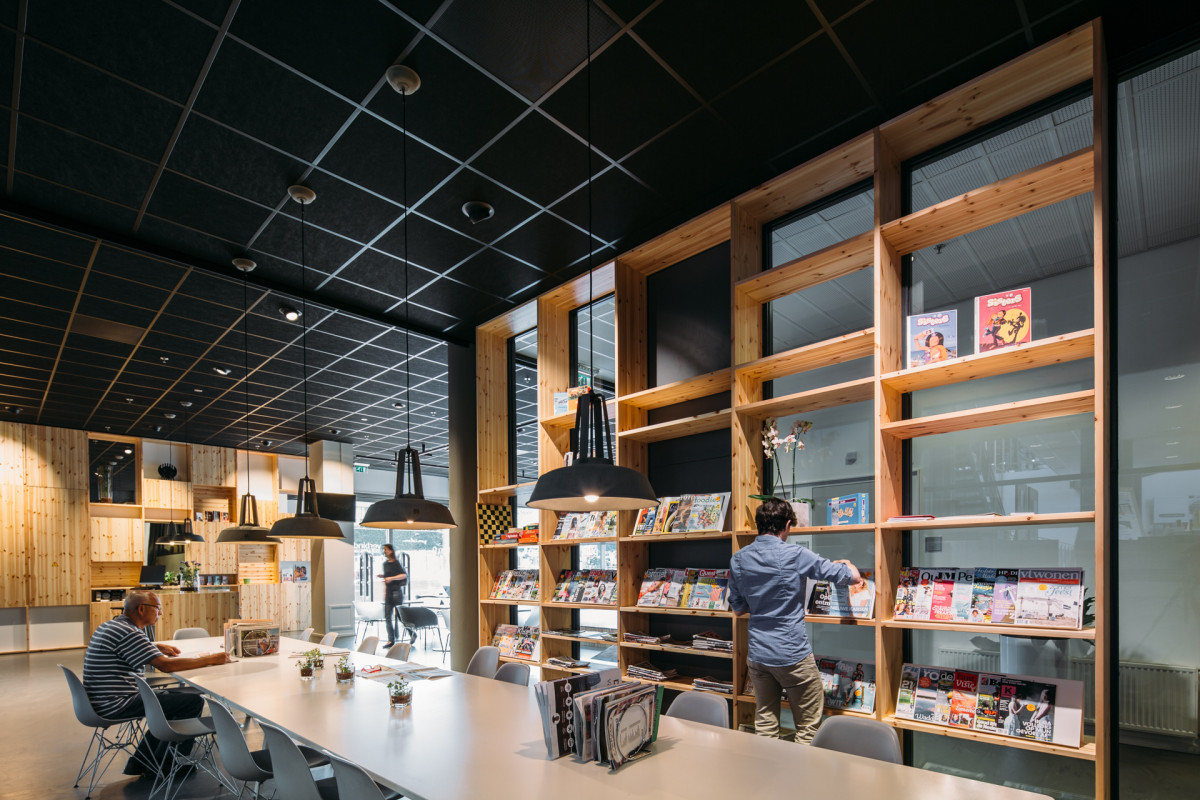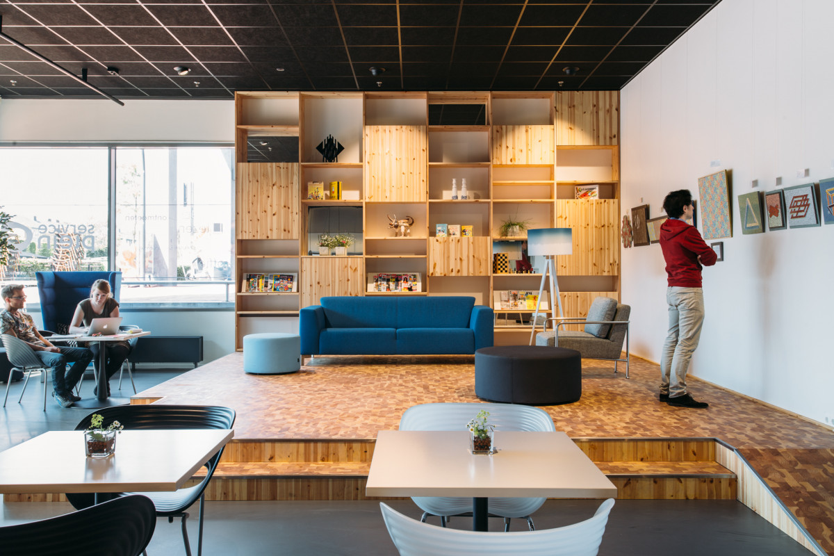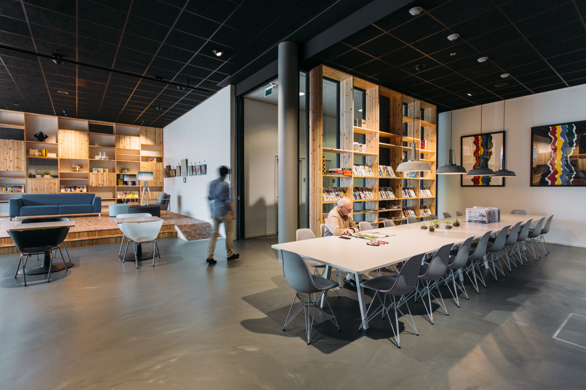 Het nieuwe serviceplein in De Meerpaal in Dronten, kortom, is een laagdrempelige, levendige plek met een podium en goede koffie.