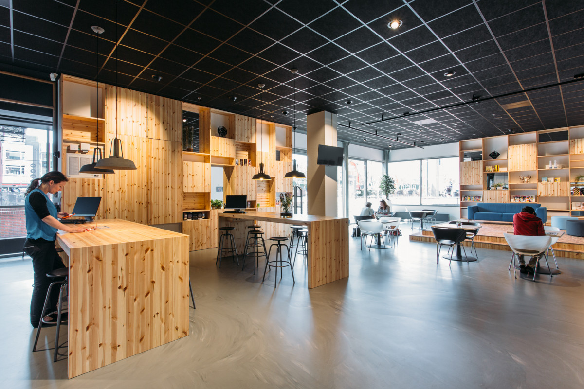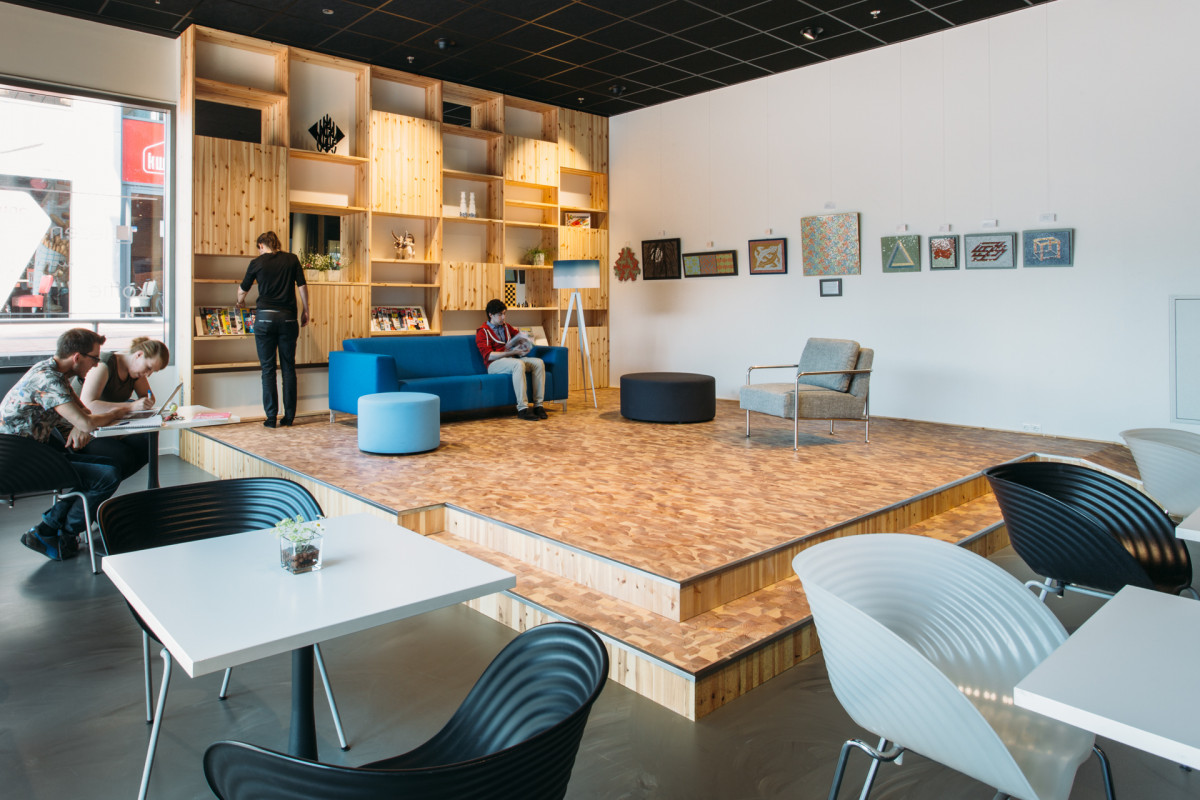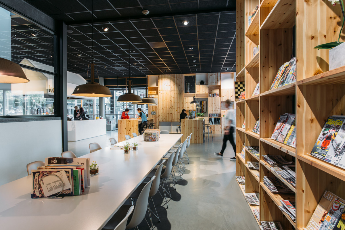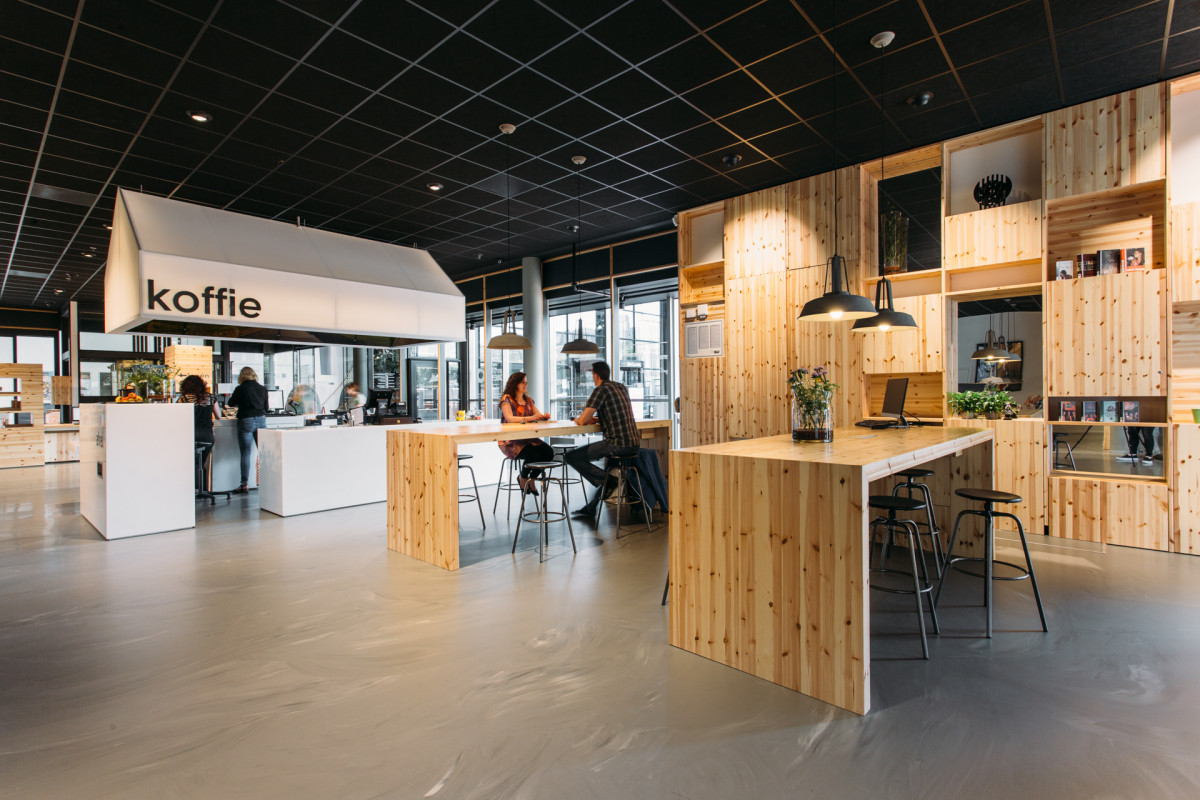 Het nieuwe serviceplein in De Meerpaal in Dronten, kortom, is een laagdrempelige, levendige plek met een podium en goede koffie.