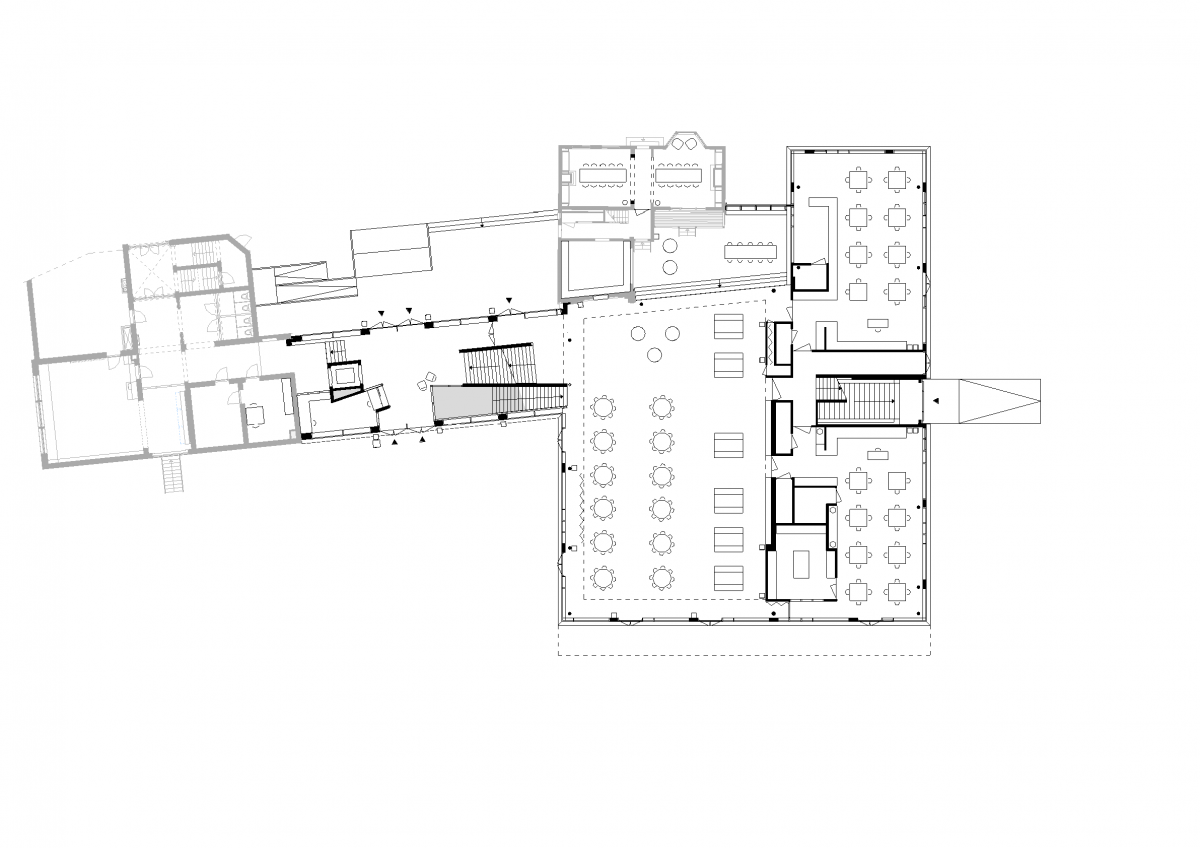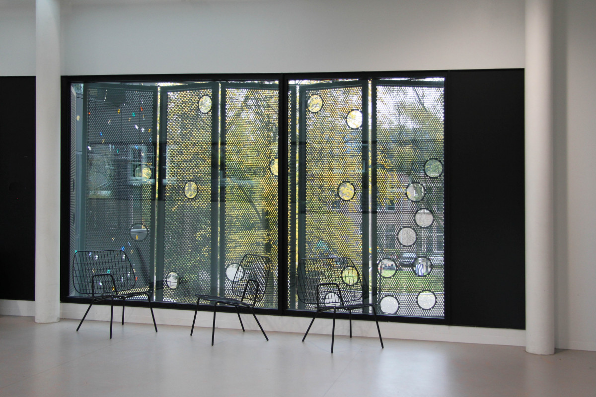Op een magnifieke plek aan het Oosterpark, met grote glazen dubbele deuren naar buiten, kunnen leerlingen ook buiten lestijden samenwerken aan projecten. Een diverse opstelling van meubilair en inrichtingselementen bieden de leerlingen optie om tussen hoge en lage, tijdelijke en langere termijn zit- en werkplekken te kiezen. Op bijzondere dagen wordt de aula omgetoverd tot theater, met podium, theatertechniek en publieksopstelling. De ruimte is multifunctioneel inzetbaar, zonder te kort te doen aan het dagelijks gebruik: comfortabele overblijf- en ontmoetingsplek. De uitgifte balie en keuken van de aula zijn passend gesitueerd in de keuken van de voormalige dienstwoning.