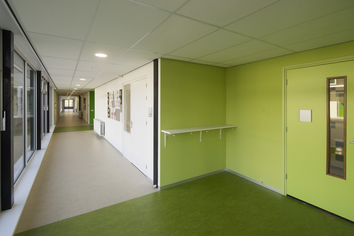 “Verbouwen als nieuwe opgave voor basisscholen en kindcentra”, zo luidt de subtitel van de Scholenbouwatlas. Deze school in Breda lijkt hiervan een praktijkvoorbeeld te zijn. De ambitie van het schoolbestuur was om Frisse School B te halen en het interieur op te frissen dat verder gaat dan alleen een schilderbeurt. Dit in combinatie met het helder benoemen van de kwaliteiten van het oorspronkelijke gebouw, zoals overmaat, de patio en als derde de introductie van de groene loper. Deze drie zaken maken dat er een gebouw staat dat de komende twintig jaren weer vooruit kan.
