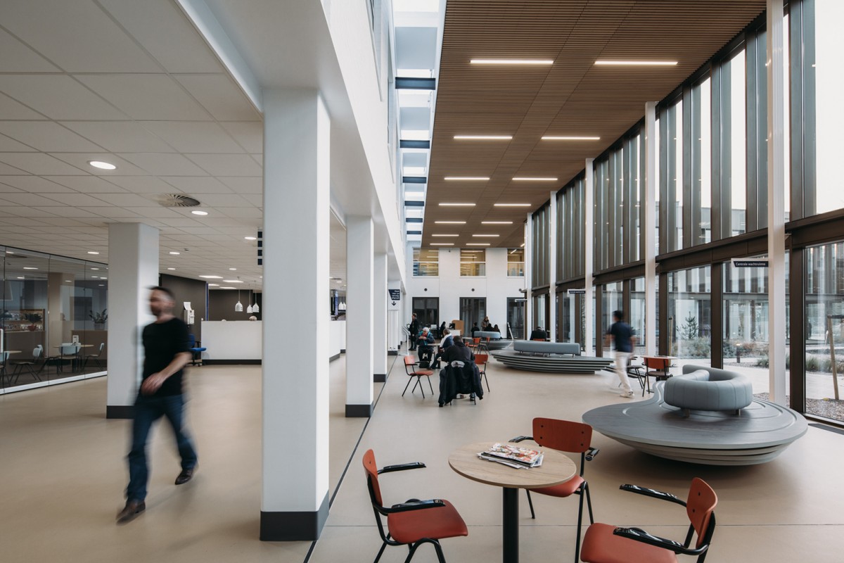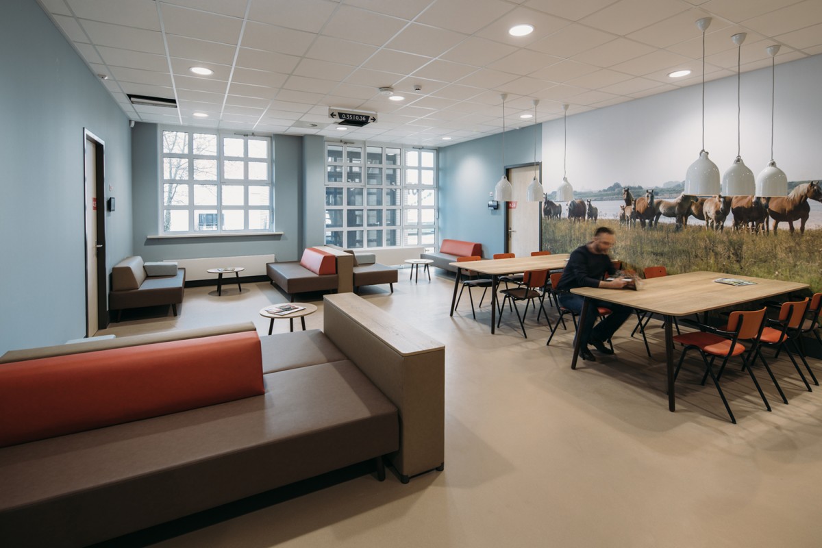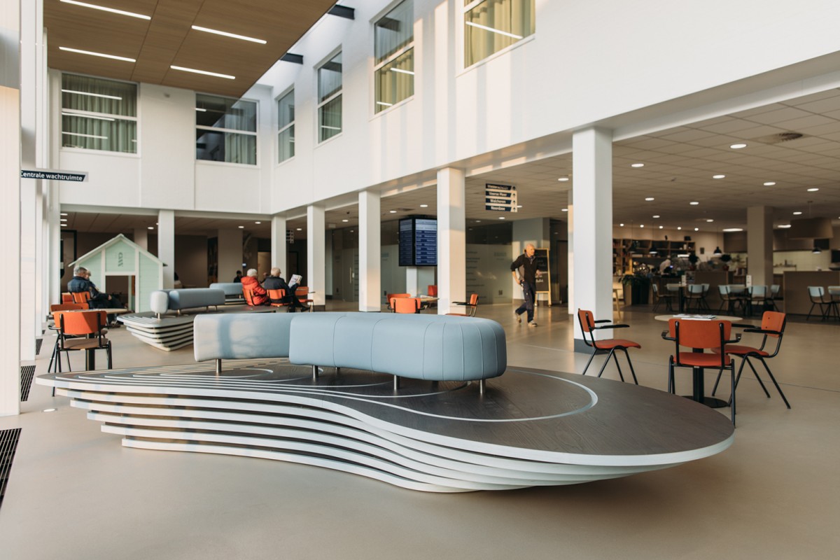 Atelier PRO maakte ook het interieurontwerp. De ruimtelijkheid, de afwerking en inrichting van het nieuwe atrium maken het wachten, in vaak spanningsvolle omstandigheden, minder onaangenaam. Het atrium is licht, het uitzicht is groen en je kunt plaats nemen op de opvallende zitmeubels, de Mosselbanken. Kan het Zeeuwser? Dit sterke regionale karakter is met de keuze van kleuren, materialen en vormen ook terug te vinden in het overige interieur. De losse inrichtingselementen zijn door atelier PRO ontworpen in samenwerking met projectinrichter Weststrate uit Middelburg.