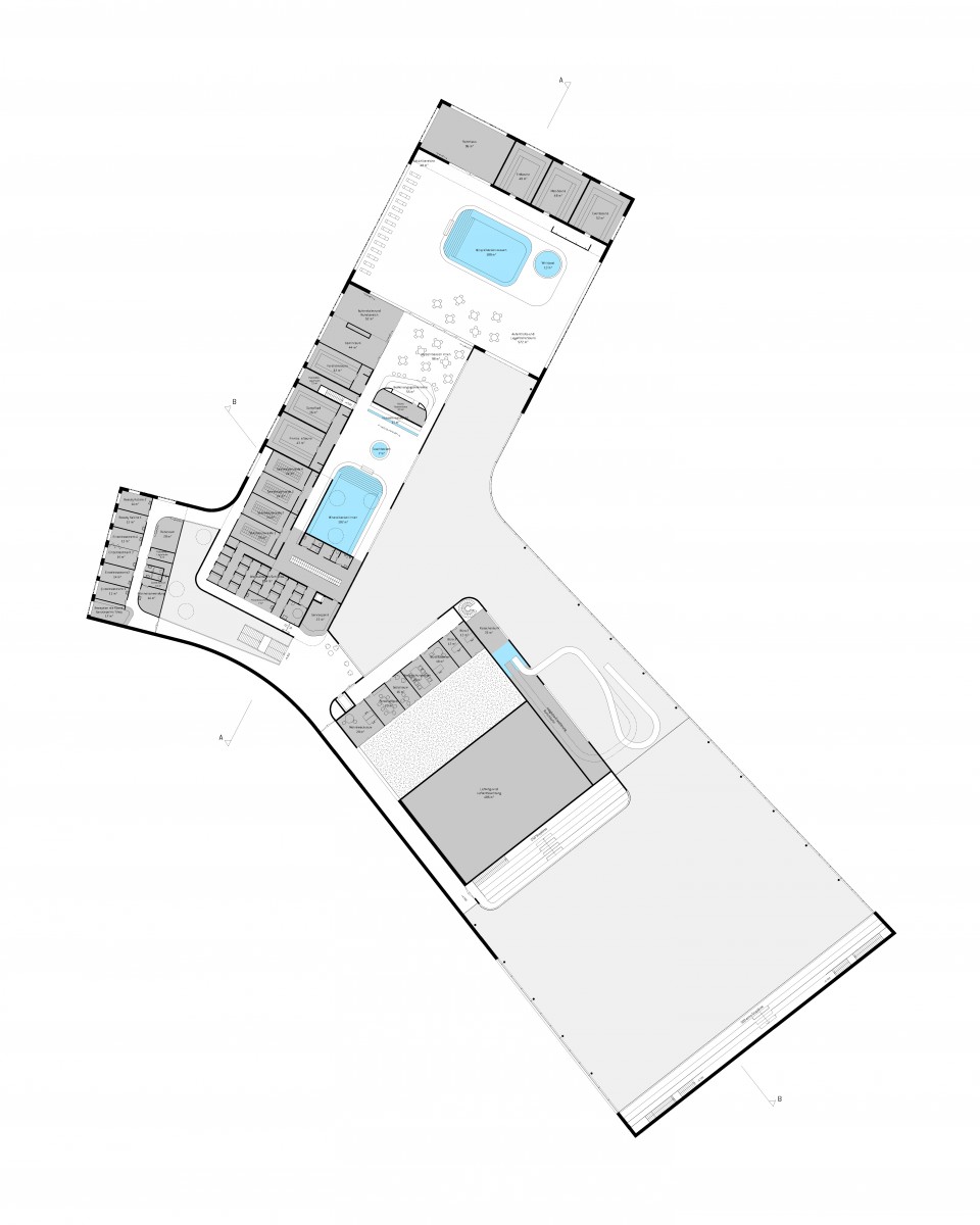 Alle Hauptnutzungsbereiche, wie Schul-bzw. Sportbad/ Freizeitbad und Sauna, haben einen eigenen Zugang und sind mit der zentralen Gastronomie intern verbunden.