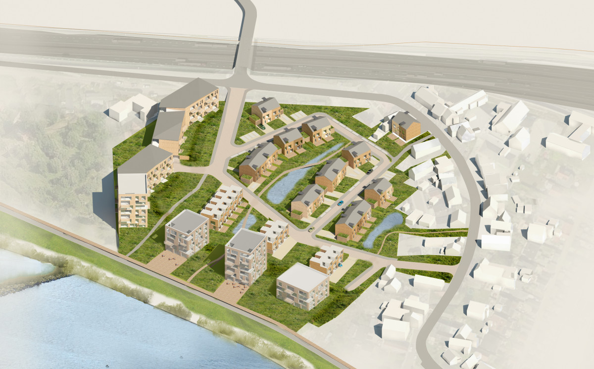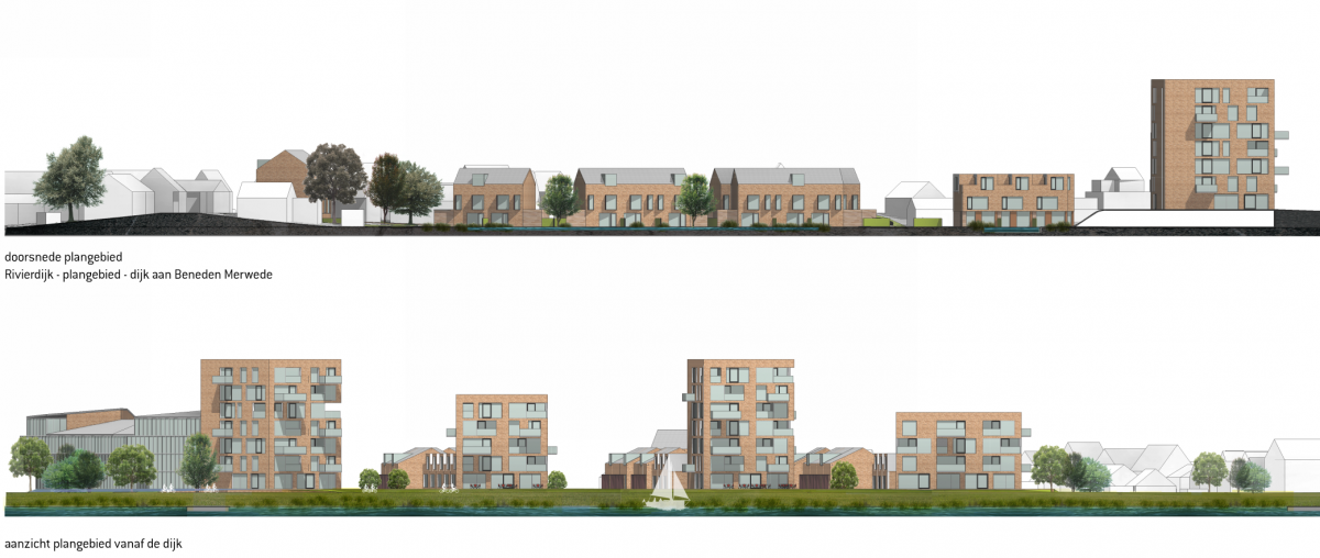 De mix van typologieën zorgt voor de diversiteit in het ontwerp. Aan de dijk staan een viertal woongebouwen met appartementen die georiënteerd staan richting de Biesbosch. Achter de dijk zorgen grondgebonden woningen in een groene omgeving voor een vriendelijk en uitnodigend woonmilieu.