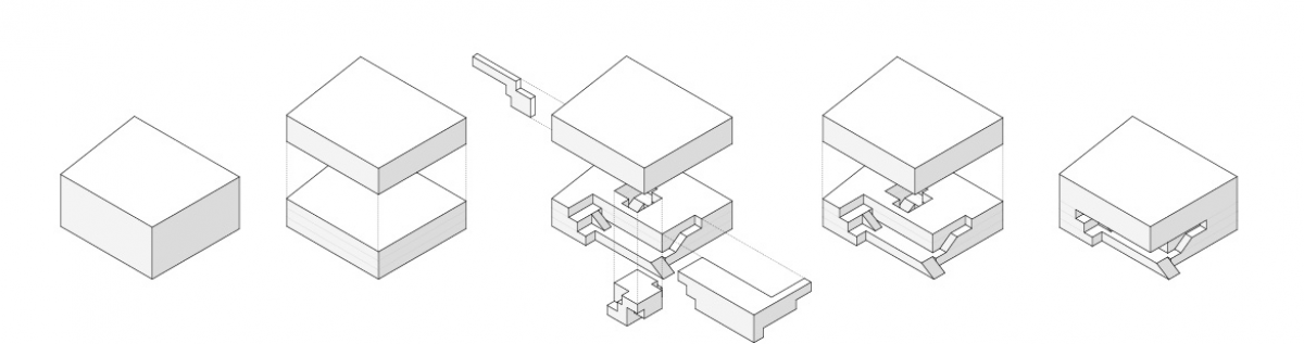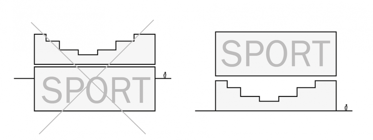 Met een footprint 45m x 55m, in hoogte variërend van minimum 4 en maximum 6 bouwlagen en een volume van ca 40% sport, 60% school en wijkactiviteiten, vraagt het ontwerp van Blok 10 om krachtige ontwerpkeuzes. Een van de keuzes waar we al direct voor stonden was de positie van het grote sportprogramma. Gezien de gesloten functie van sport en de gewenste open, uitnodigende plint, is de sport in de hoogte georganiseerd. Door sport in de hoogte te organiseren ontstijgt Blok 10 de schoolfunctie en vormt zowel overdag als ’s avonds een voor iedereen herkenbaar icoon in de wijk.