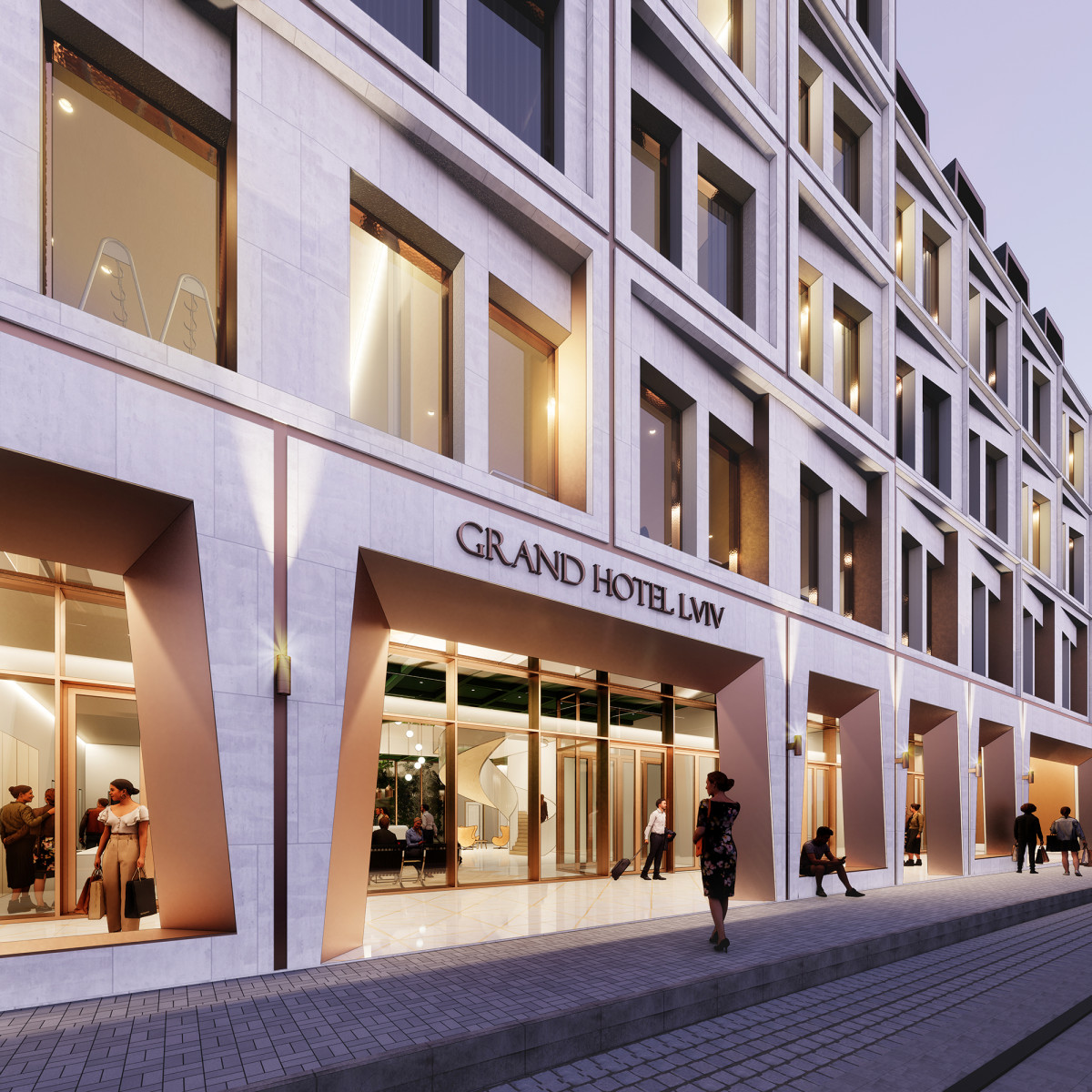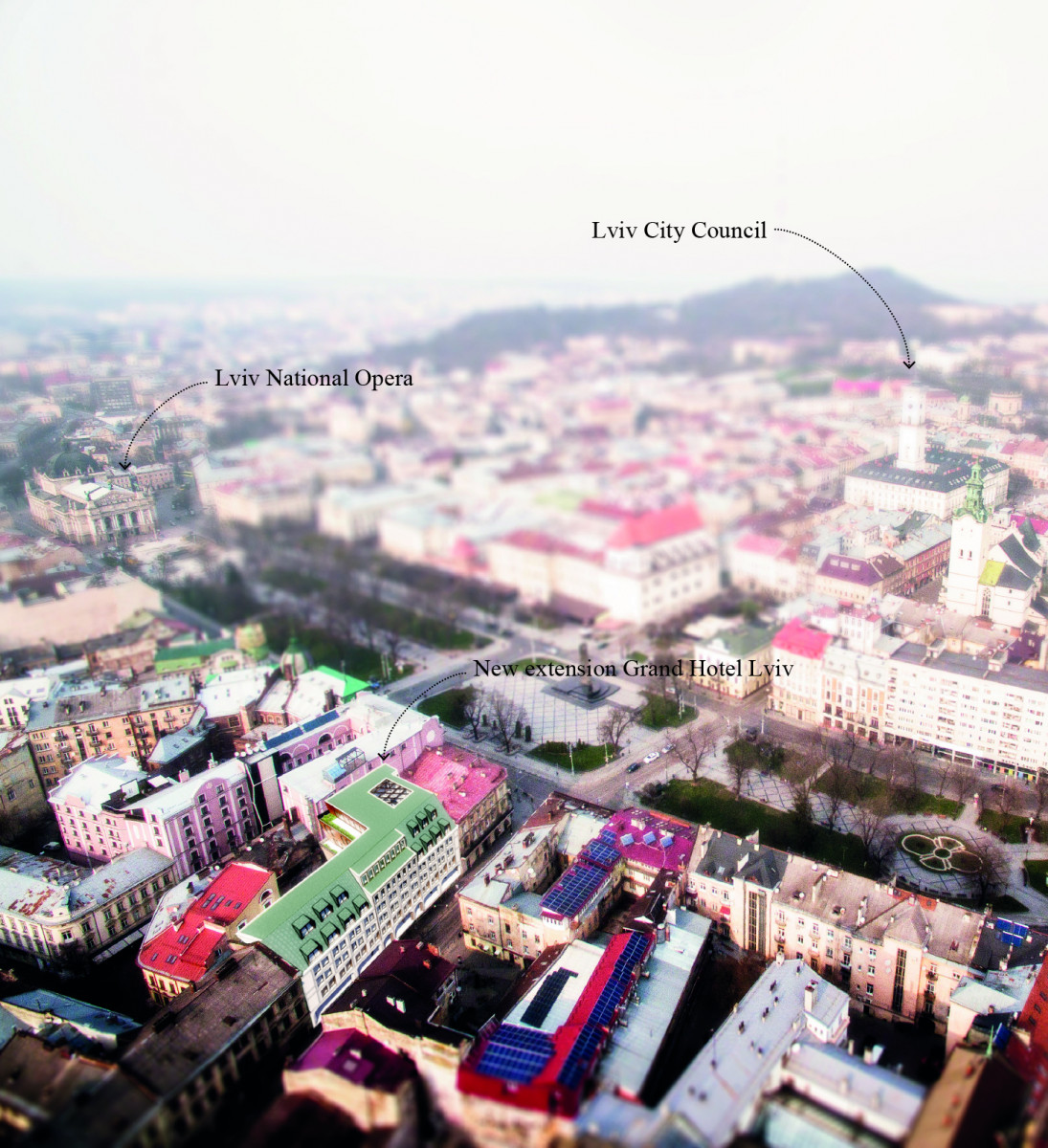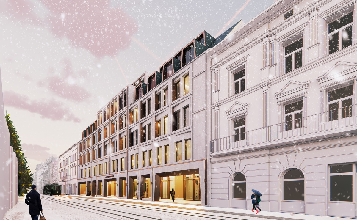 Recently atelier PRO created an architectural design for the extension of the Grand Hotel Lviv with shopping centre in an international design competition. The design should set a qualitative precedent for the creation of unique and contextual architecture, preserving and developing the historical environment of the central part of the city of Lviv, Ukraine.