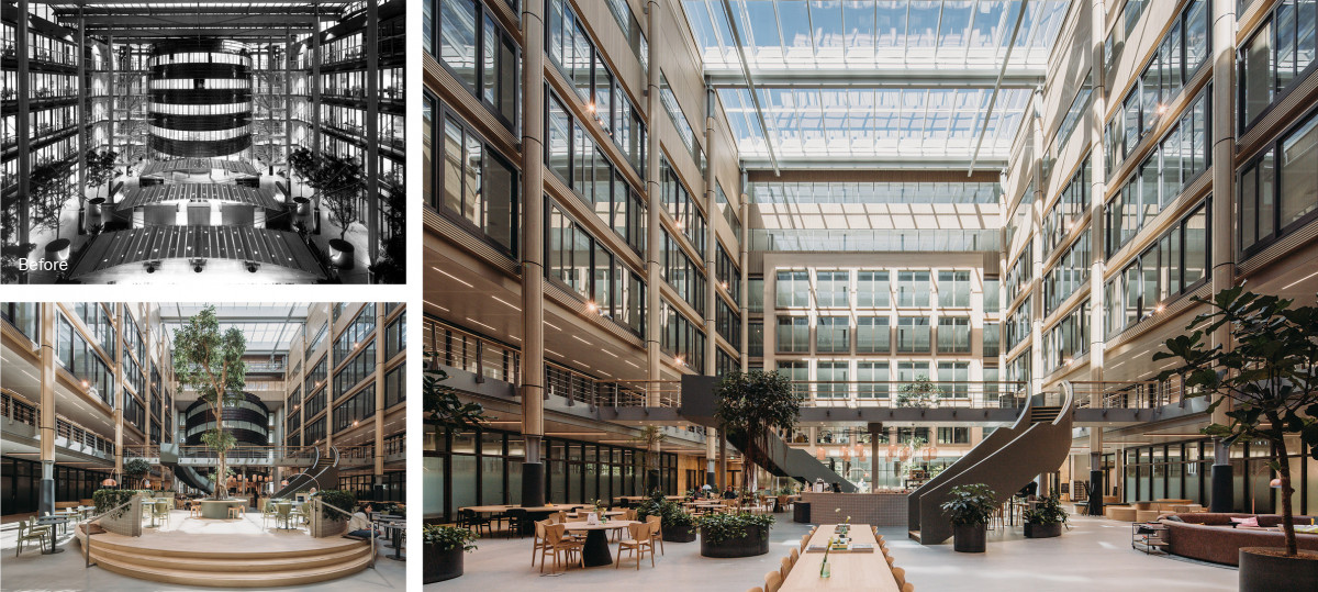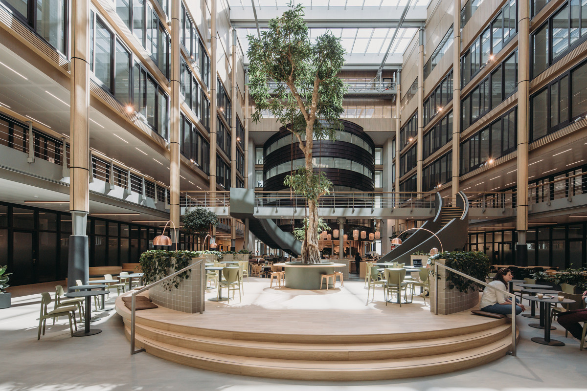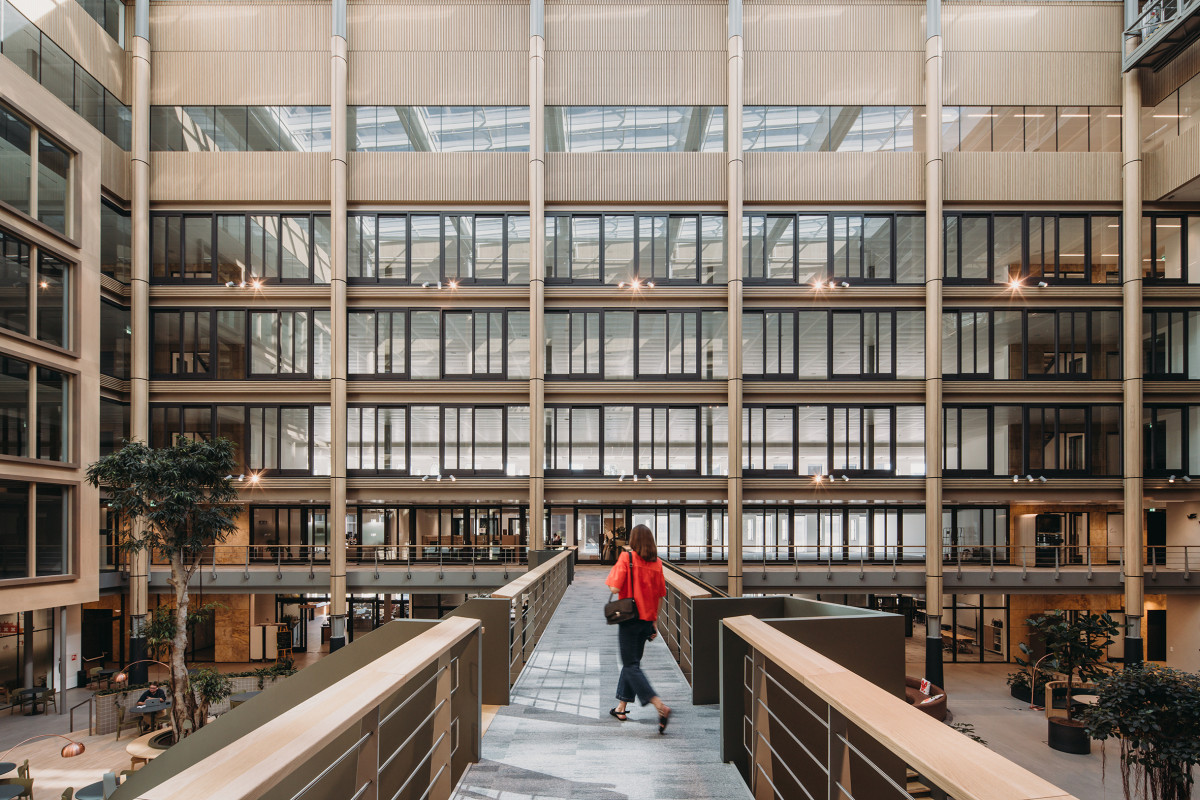 Omdat het pand al voldeed aan een groot deel van de eisen, konden veel elementen uit het bestaande gebouw hergebruikt en geüpgraded worden. Het complex bestaat uit twee lange kantoorvleugels. Deze zijn verbreed en opgetopt met een extra verdieping, terwijl ook de middenvolumes zijn vergroot; hierdoor is in totaal circa 10.000 m² toegevoegd aan het bestaande vloeroppervlak van 19.000 m². Het centrale atrium is uitgebouwd met een houten kapconstructie en heeft een nieuwe uitstraling gekregen; het is heringericht als een weelderige groene ruimte waar de gebruikers elkaar kunnen ontmoeten en fungeert daarmee als het hart van het gebouw. Nieuwe, sfeervolle trappenhuizen nodigen uit om elkaar te ontmoeten en brengen mensen in beweging.